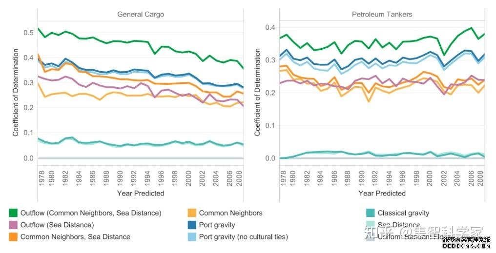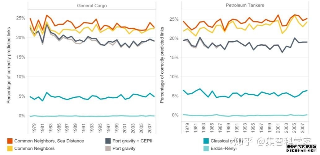 ![]() 导语 海运占国际贸易总值的 70% 以上,占所有货运量的 80%。全球供应链是一个复杂的贸易网络,该网络的结构不仅影响有关地区的社会经济发展,还影响其生态系统。2020年7月新发表在 PNAS 期刊的一篇论文,借助海洋贸易网络模型和机器学习方法,对全球海上贸易流量进行了严格而全面的分析。本文是对这篇论文的解读。 8月1日(本周六)晚,我们邀请汪小帆教授以网络科学为主题在集智做直播,开放预约中,详情请下拉至文末。 ![]() 论文题目: 海洋运输行业是全球经济的支柱,海上运输占世界贸易总值的 70%。海上运输被视为全球贸易和全球经济的骨架,其海上贸易关系相当于一个复杂的贸易网络,这种网络结构对社会经济发展起到重要的作用。 随着北极航运业的发展,迫切需要了解海上贸易潜在机制,进而设计新航道与预测未来贸易流量。据统计到 2025 年,北海航线的运输量将增加到每年 8000 万吨。这种快速发展带来了经济,环境,政治和社会挑战,这是多个政府关注的焦点。北极航运的发展不仅会影响由于其地理位置直接参与北极航线和港口的国家,而且还会影响那些可能成为新的转运中心的国家。目前,还只有少数的研究工作提供了海洋贸易流量分布情况的详细介绍及其背后的发展规律。 此外 ,当前对海上运输和港口的研究往往集中于特定的运营商或航运业,地区的某些部门以及特定的面板数据分析,而分析整个海上网络历史演变及其形成机理的研究却很少。其主要原因是难以开发或获取有关海上贸易流的数据。在 2020 年 7 月发表于 PNAS 期刊的一项研究中,作者使用了由劳埃德情报局(Lloyd's List Intelligence)提供的 1977 年至 2008 年之间的世界船队每日移动数据及其贸易流统计数据(主要包括世界上绝大多数港口间不同类型船舶的贸易流量数据),对海上贸易流进行建模与分析,进而填补了该领域研究的空白。 该研究将港口间贸易关系数据构建成贸易网络模型,进而利用网络科学的分析方法研究影响海上贸易关系及其流量的潜在机制。在本文构建的海洋贸易网络模型中,节点代表港口,连边表示船舶在一年内在两个港口之间的航行情况。当两个港口运输的船舶总载重吨数(DWT)超过特定阈值k时,该港口间存在连边。此外,文章还依据不同的商业船舶类型构建一系列子网络,包括集装箱运输船,干散货运输船,一般货船,石油运输船和液化天然气轮船等。 ![]() 进一步,为了预测港口间的未来运输流量,本文综合考虑了港口特征(如港口区域的人口,GDP,港口吞吐量等)和连边特征(如港口距离,文化与历史联系,共同邻居数量等)定义了一对港口((i,j)之间的连接概率,或者说是港口之间的流量值: ![]() 为了更好地识别港口间的连接概率和提升模型的预测质量,该研究将利用符号回归,机器学习以及引力回归等方法对解释变量进行组合建模,以此降低人为因素的影响。 本文利用不同拓扑信息或者港口特征信息所构成的模型对海上贸易网络进行链路预测。为了比较不同模型的预测效果,文章采用正确预测连边数量与新产生的连边数量的比例来刻画,并对不同类型的子网络进行了验证。 在这些模型中,预测效果最好的模型是“共同邻居数-海洋距离”所构成的模型,即两个港口之间的共同邻居越多,它俩的链接概率越高;而两个港口越近,它俩的链接概率越低。研究结果表明建立海上贸易直接关系的关键特征是共同邻居数。在不同类型船舶的子网络上,该模型都适用。在 1997 年- 2008 年的整个研究区间内,模型的预测效果都很稳定。 此外,基于港口的人口潜力、国家的 GDP 值和港口海洋距离的经典引力模型的性能较差。而将 GDP 值或人口潜力数据与共同邻居数量相结合,并不会提高共同邻居的预测准确性模型,表明这两个变量对预测海上贸易联系没有更多的附加值。 为什么共同邻居数能很好地预测港口间的贸易关系?研究者认为捷径道路的选择趋势( The tendency to shortcut routes)是一种可能的解释,即两个港口间的共同邻居数量和它们间的网络中的两条路径的数量是一致的。可以预期的是,共享大量邻居的两个港口之间,会有更大的间接贸易流。为此,建立直接贸易连接可降低运输成本。 ![]() ![]() ![]() 图2:1978年至2008年之间,不同预测模型结果的对比情况。使用不同模型正确预测的链接打开量的百分比度量。Y+ 1年的预测基于Y年的特征。表中提供了该期间的平均结果。在度量的设计中,将每个模型要预测的连边数设为连续几年之间实际创建的连边数,因此,误报率=误报率=(100%–百分比量度)。用于链路预测的模型的相对质量是稳定的,且依赖于公共邻居数量的模型的预测结果始终是最好的。 该部分将上述链路预测的方法拓展到加权方案来预测海上贸易网络中连边的流量。现对公式 1 进行改写,wij被定义为在 Y+1 年对港口 i、j 之间绝对值流量的估计,即 wij代表从港口i流向港口j的份额。一般地,在 Y+1 年,港口 i,j 之间流量的估计值可被计算: ![]() 其中,dead weight tonnage(DWTi)表示 Y 年份通过港口 i 总的船舶自重吨位值。N(i)表示港口 i 的度值,港口i的直接贸易伙伴的集合,Φ 是参数的拟合函数。在本研究中,将公式 2 定义为“流出模型”。在流量预测的过程中,使用了 Y 年的未加权网络数据和港口的吞吐量(Port DWT)来预测年的流量。 与链路预测结果相类似,依赖于公共邻居的数量和海洋距离的