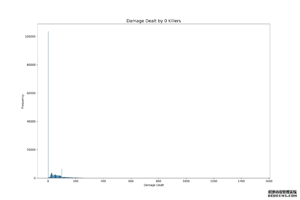 得到下图,可以看出相当一部分玩家步行距离 < 100m,表明他们跳伞落地就被击杀或者直接就挂机了。