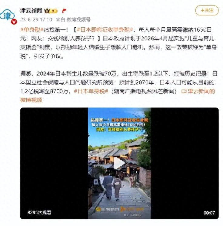 大家好,我是社会实说。 关注我,每日分享最新社会热点! 今天,网络上有关日本征收“单身税”的消息火了。 ![]() 根据日本政府的计划,实施“儿童未来战略”,从 2026 年起,全体国民和企业将通过医疗保险附加费的形式缴纳 “支援金”。 2026 年度,日本社会每人(包括在日本生活工作的外国人)每月平均负担 250 至 450 日元。 2027 年度增至 350 至 550 日元。 到 2028 年度将达到 450 至 700 日元。 以年收入 400 万日元的普通工薪族为例,到 2028 年时,每人全年需要缴纳的 “支援金”,将达到 7800 日元(约 388 元人民币)。 一旦这一制度实施,每个孩子从出生到 18 岁为止,可获得约 352 万日元(约 17.5 万元人民币)的生活补助,比现行政策增加约 146 万日元(约 7.3 万元人民币)。 ![]() 日本社会已经陷入了年轻人 “不恋不婚不育” 的 “三不主义” 怪圈,孩子越来越少。据报道,2024年日本新生儿数量跌破70万,出生率跌至1.2以下,创历史新低。远低于维持人口世代更替所需的 2.1。 少子化导致劳动力短缺,企业招工难,制约经济发展;同时,老年人口增多,养老金、医疗等社会保障支出大幅增加,财政不堪重负。 为应对这一危机,日本政府推出了 “儿童未来战略”,计划扩充儿童津贴、建设育儿设施、提供教育补助,希望通过这些经济激励政策来鼓励年轻人结婚生子,缓解人口危机。 看到日本的情况,中国网友坐不住了,纷纷表示担心我们国家也会收“单身税”。其实大可不必担忧。 国家统计局数据显示,2023 年末全国人口 140967 万人,比上年末减少 208 万人,人口自然增长率为 - 0.15‰。中国同样面临人口老龄化加剧、少子化趋势明显等问题。2023 年,中国 60 岁及以上人口为 2.8 亿人,占总人口的 19.8%,养老负担逐渐加重;而出生人口持续走低,2023 年出生人口 902 万人,较上一年减少 58 万人。虽然中日两国人口问题有相似之处,但中国目前并不具备征收 “单身税” 的条件。 从经济角度分析,征收 “单身税” 会增加单身人士经济负担,降低生活质量。中国单身人口数量庞大,据民政部数据,2022 年中国单身成年人口超 2.4 亿,其中独居人口超 7700 万。这些单身人群中,部分人面临购房、养老等生活压力,若再征收 “单身税”,无疑雪上加霜,还可能抑制消费,对经济增长产生负面影响。 另外,婚姻与生育意愿受多种因素制约,如房价高、育儿成本大、就业竞争激烈等。以育儿成本为例,中国家庭追踪调查数据显示,一个孩子从出生到 18 岁,家庭平均支出约 48 万元,大城市这一数字更高。在这些问题未有效解决前,单纯依靠税收手段难以达到鼓励生育的目的。 ![]() 近几年,我国在鼓励生育方面已采取一系列积极措施。 生育政策方面,全面实施二孩、三孩生育政策及配套支持措施,延长产假、陪产假,提供生育津贴补贴,减轻家庭生育负担。 托育服务方面,加大投入建设托育机构,提高托育服务供给能力,国家卫健委数据显示,截至 2022 年底,全国共有托育服务机构约 7.5 万家,提供托位数约 350 万个。 教育减负方面,大力推进 “双减” 政策,减轻学生学业负担,降低家庭教育支出。 鉴于中日两国国情差异,我国短期内征收 “单身税” 的可能性极小。未来,我国更可能通过完善生育支持政策体系、减轻家庭生育养育教育负担、改善就业环境等综合措施,来提高大众生育意愿。 图源网络,如有侵权,联系删除。 举报/反馈 |