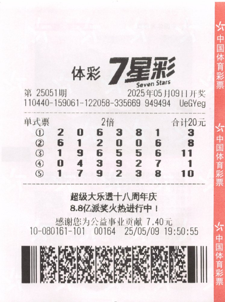 播报 编辑 第一条 根据《彩票管理条例》、《彩票管理条例实施细则》、《彩票发行销售管理办法》等有关规定,制定本规则。 第二条 中国体育彩票7星彩(以下简称7星彩)由国家体育总局体育彩票管理中心发行和组织销售。由各省、自治区、直辖市体育彩票销售机构(以下称各省体彩机构)在所辖区域内销售。 第三条 7星彩采用计算机网络系统发行,在各省体彩机构设置的销售实体店销售,定期开奖。 第四条 7星彩实行自愿购买,凡购票者均被视为同意并遵守本规则。 第五条 不得向未成年人出售彩票或兑付奖金。 播报 编辑 第六条 7星彩投注是指从000000-999999中选取1个6位数字作为前六位、从0-14中选取1个数字作为最后一位,共同组成一注号码进行的投注。每注金额人民币2元。 第七条 购买者可以进行复式投注。复式投注包括三种形式: (一)前六位复式:前六位中1位或多位上选取2个及以上数字,最后一位选取1个数字; (二)最后一位复式:前六位选取1个6位数字,最后一位选取2个及以上数字; (三)全复式:前六位1位或多位上选取2个及以上数字,最后一位选取2个及以上数字。 第八条 购买者可对其选定的投注号码进行多倍投注,每张彩票中的单注号码多倍投注的倍数范围为2-99倍。单张彩票的投注金额最高不得超过20000元。 第九条 7星彩按期销售,每周销售三期,期号以开奖日界定,按日历年度编排。 第十条 购买者可在各省体彩机构设置的销售实体店投注。投注号码经投注机打印出对奖凭证,交购买者保存,此对奖凭证即为7星彩彩票。 第十一条 购买者可选择机选号码投注、自选号码投注。机选号码投注是指由投注机随机产生投注号码进行投注,自选号码投注是指将购买者选定的号码输入投注机进行投注。 中国体育彩票“7星彩”样张播报 编辑 第十二条 7星彩按当期销售总额的50%、13%、37%分别计提彩票奖金、彩票发行费和彩票公益金。彩票奖金分为当期奖金和调节基金,其中,49%为当期奖金,1%为调节基金。 第十三条 7星彩共设六个奖级,一、二等奖为浮动奖,三、四、五、六等奖为固定奖。各奖级和奖金规定如下: 一等奖:奖金总额为当期奖金额减去固定奖总额后的90%与奖池中累积的奖金之和,单注奖金按注均分,单注最高限额500万元。 二等奖:奖金总额为当期奖金额减去固定奖总额后的10%,单注奖金按注均分,单注最高限额500万元。 三等奖:单注奖金固定为3000元。 四等奖:单注奖金固定为500元。 五等奖:单注奖金固定为30元。 六等奖:单注奖金固定为5元。 第十四条 7星彩设置调节基金。调节基金包括按销售总额1%的提取部分、浮动奖奖金按元取整后的余额、逾期未退票的票款。调节基金专项用于支付各种不可预见情况下的奖金支出风险、调节浮动奖奖金以及设立特别奖。若当期奖金额不足以支付固定奖总额时,不足部分从调节基金中支付。若调节基金不足时,用彩票兑奖周转金垫支。 第十五条 7星彩设置奖池,奖池由未中出的浮动奖奖金和超出浮动奖单注奖金封顶限额部分的奖金组成。奖池与当期奖金中用于一等奖的部分及调节基金转入部分合并支付一等奖奖金。 第十六条 当期开奖前,奖池资金累积超过3亿元(含)时,当期一等奖与二等奖奖金分配比例倒置,即一等奖分配奖金为当期奖金额减去固定奖总额后的10%,二等奖分配奖金为当期奖金额减去固定奖总额后的90%。 第十七条 一、二等奖按照该奖级实际中奖注数平均分配该奖级奖金。当上一奖级单注奖金低于下一奖级单注奖金的2倍且低于500万元时,上一奖级单注奖金补足至下一奖级单注奖金的2倍且不高于500万元。所需资金从调节基金中支付,若调节基金不足时,用彩票兑奖周转金垫支。 第十八条 7星彩设置单期最大返奖总额,若当期应付奖金超出最大返奖总额,则各奖级单注奖金(含浮动奖单注最低奖金)相应调整。 第十九条 在出现彩票兑奖周转金垫支情况下,当调节基金有资金滚入时优先偿还垫支的彩票兑奖周转金。 播报 编辑 第二十条 7星彩每周二、五、日开奖。每期开奖时,在公证人员封存销售数据资料之后,并在其监督下从6组0-9中按顺序摇出6位数字作为前六位、从0-14中摇出1个数字作为最后一位,共同组成7星彩开奖号码。 第二十一条 每期开奖后,体育彩票发行机构应向社会公布当期销售总额、开奖号码、各奖级中奖情况以及奖池资金余额等信息,并将开奖结果通知7星彩销售实体店。 播报 编辑 第二十二条 7星彩根据投注号码与开奖号码相符情况确定相应中奖资格。具体规定如下: 一等奖:投注号码的全部数字与开奖号码对应位置数字均相同,即中奖; 二等奖:投注号码的前6位数字与开奖号码对应位置数字相同,即中奖; 三等奖:投注号码前6位中的任意5个数字与开奖号码对应位置数字相同且最后一个数字与开奖号码对应位置数字相同,即中奖; 四等奖:投注号码中任意5个数字与开奖号码对应位置数字相同,即中奖; 五等奖:投注号码中任意4个数字与开奖号码对应位置数字相同,即中奖; 六等奖:投注号码中任意3个数字与开奖号码对应位置数字相同,或者投注号码前6位中的任意1个数字与开奖号码对应位置数字相同且最后一个数字与开奖号码对应位置数字相同,或者仅最后一个数字与开奖号码对应位置数字相同,即中奖。 第二十三条 当期每注投注号码只有一次中奖机会,各奖级奖金不能兼中兼