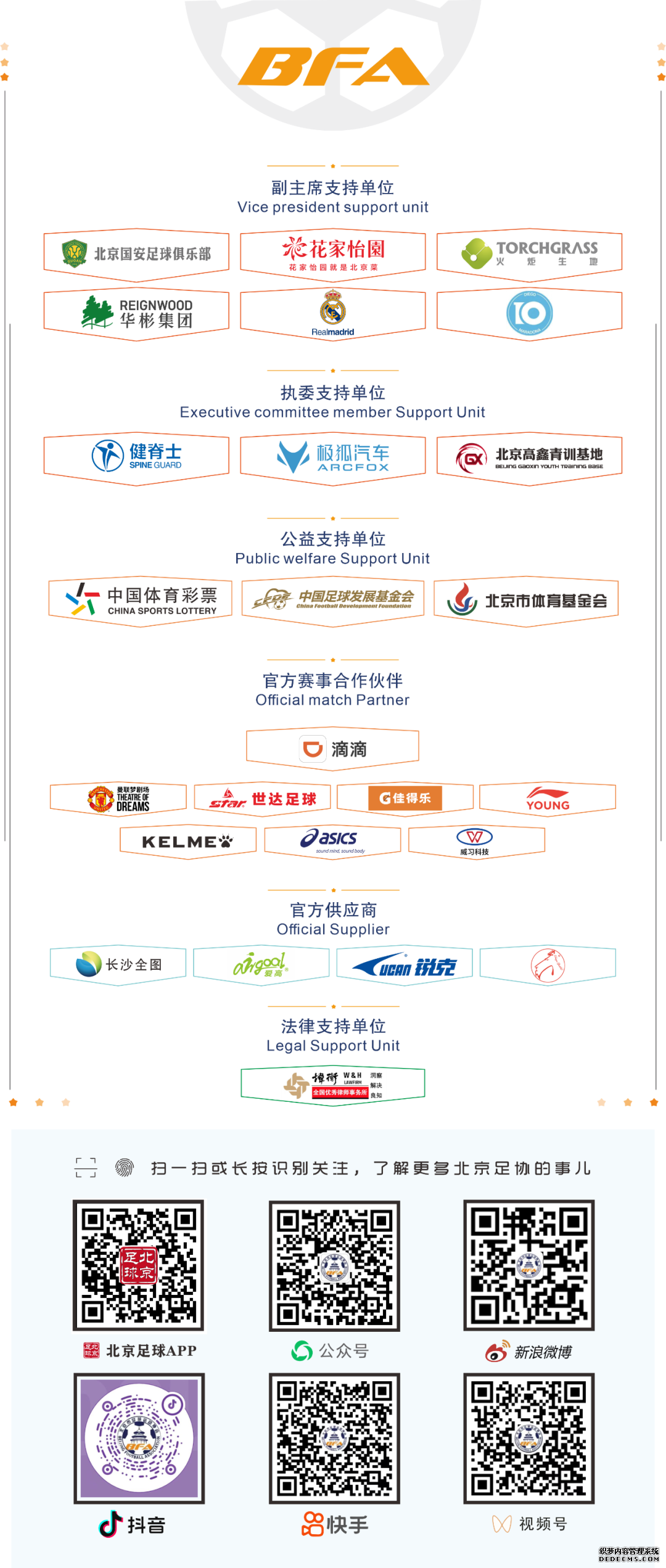 ![]() 各相关教练员: 为贯彻落实《北京市足球改革发展总体方案》及《北京市足球运动协会教练员管理办法》,北京市足协已于2025年2月开展第一次教练员线上注册工作,现将通过审核的教练注册名单进行公布(见附件)。本名单按照教练员证书等级进行分类,同级别内按姓氏笔画排序,统计截止至2025年3月31日。 一、注册情况 截至2025年3月31日,北京市足协共有注册教练员:7487名。其中,亚足联职业级26名,亚足联A级85名,亚足联B级129名,亚足联C级869名,中国足协D级1813名,E级4564名。 二、注意事项 1.未在北京市足协进行工作注册的教练员:可以在注册窗口开放期内(每年2月、7至8月),登录北京市足协教练员管理系统(www.bjfacoach.com)进行注册; 2.如名单中个人信息有误:可以登录北京市足协教练员管理系统(www.bjfacoach.com)——选择个人管理中心——点击“个人设置”中的“个人信息”进行修改,确认信息无误后点击页面最下方的“修改”即可完成修改; 3.如名单中教练员等级有误:可以于5月29日前拨打010-63028334(电话接听时间:工作日9:00-11:00、14:00-16:00)联系管理员协助修改; 4.如需查看北京市足协教练员注册证明:可以登录北京市足协教练员管理系统(www.bjfacoach.com)——选择个人管理中心——点击“教练员管理”中的“注册信息”,点击“查看注册证明”即可查看、下载、保存电子版注册证明; 5.如北京市足协教练员注册证明显示“已过期”:可以登录北京市足协教练员管理系统(www.bjfacoach.com)——选择个人管理中心——点击“教练员管理”中的“注册信息”——确认信息无误后点击页面最下方的“提交注册申请”即可。 特此通知。 附件:1.职业级注册教练员列表.pdf 2.A级注册教练员列表.pdf 3.B级注册教练员列表.pdf 4.C级注册教练员列表.pdf 5.D级注册教练员列表.pdf 6.E级注册教练员列表.pdf 北京市足球运动协会 2025年5月27日 ![]() |