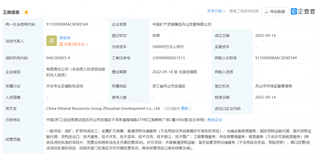 近日,据企查查信息平台显示,中国矿产资源集团有限公司(以下简称中矿集团)首次新增投资企业中国矿产资源集团舟山发展有限公司,具体情况如下: ![]() 中国矿产资源集团舟山发展有限公司成立于2022年9月14日,注册资本500000万元,法定代表人邵安林,所属地区为浙江省舟山市定海区,经营范围包括选矿;矿物洗选加工;金属矿石销售;普通货物仓储服务;仓储设备租赁服务;国际货物运输代理等。中矿集团持股比例100%,认缴出资金额500000万元。 ![]() 中矿集团成立于2022年7月,总部位于河北省雄安新区。中矿集团经营范围包括:矿产资源(非煤矿山)开采,以及选矿、矿物洗选加工、金属矿石销售、采购代理服务、货物进出口、进出口代理、国际货物运输代理、国内货物运输代理、普通货物仓储服务、供应链管理服务、工程管理服务、规划设计管理,以及从事与主业相关的投资活动和资产管理服务等等。 据了解,组建中国矿产资源集团有限公司,是党中央、国务院着眼于用好国内国际两个市场、两种资源,增强我国重要矿产资源供应保障能力的重大举措,对于保障产业链供应链安全,促进高质量发展具有重要意义。作为中央直接管理的国有独资公司和国家授权投资机构,公司五名高管分别来自中铝、宝武、鞍钢、五矿四家央企,以及国家发改委。 钢铁行业是国民经济的支柱,铁矿原料价格显得尤为重要。自2019年淡水河谷发生矿难以来,铁矿价格一直居高不下,严重侵蚀了国内钢厂的利润。我国钢企在铁矿议价方面处于相对弱势地位。若实施铁矿石集中采购制度,成立集中式管理团体整合国家铁矿进口业务,将有效提升我国对于铁矿石的议价能力,从而提振我国钢厂盈利能力。 据公开报道,8月1日,国务院国资委网站公布最新中央企业名录,新组建的中矿集团排在第36位,位于中国宝武钢铁集团有限公司和中国铝业集团有限公司之间。目前国务院国资委监管的央企总数为98家。因此,中矿集团的成立对增强我国重要矿产资源供应保障能力具有重要意义。 此次中矿集团投资50亿成立新公司,并将公司选在浙江省舟山市,这也与该地在中转储运等方面的独特优势有关: 2021年,宁波舟山港完成年货物吞吐量(货物吞吐量=用集装箱装的货物量+非集装箱装的货物量)12.24亿吨,连续13年位居全球第一;完成集装箱吞吐量3108万标准箱——宁波舟山港成为继上海港、新加坡港后全球第三个跻身“超3000万箱俱乐部”港口。 根据宁波在《锻造硬核力量加快推进世界一流强港建设行动方案(2021-2025年)》指出,到2025年,宁波舟山港将基本建成世界一流强港,在服务双循环新发展格局、长江经济带发展、长三角一体化发展等国家战略中的硬核力量更加突显;港口货物吞吐量、集装箱吞吐量分别达到13亿吨、3500万标箱,稳居全球第一、全球前三。 国务院8月初批复舟山港口岸5个港区扩大开放,新增开放面积112.5平方公里。截至目前,全市口岸开放总面积达1457.3平方公里。此次港区获得批复,当地企业可以正式申报口岸扩大开放验收,将有利于企业拓展市场,进一步释放产能。 铁矿石产业链是舟山重点产业方向之一,2021年舟山港铁矿石吞吐量1.78亿吨。截至今年7月,舟山全市新增落户大宗商品金属矿石贸易企业364家,注册资金达50亿元。今年,舟山市投促中心将持续做好铁矿石产业链招商引资工作,加大项目招引力度,加快项目推进速度,力争全市引进金属矿石贸易企业500家以上,其中中心独立引进100家以上,全力推动铁矿石储运基地建设。 舟山港作为中国最大的铁矿石中转基地,将围绕浙江自贸区建设,对标世界一流强港,致力将舟山港域打造成为我国重要的铁矿石战略储备基地,建成亚太铁矿石分销中心和铁矿石国际贸易交易中心。 ▲宁波舟山港梅山港区集装箱码头一派繁忙以上种种迹象表明,宁波舟山未来发展将有更大的想象空间。尤其是舟山港口岸5个港区项目扩大开放验收通过后,将进一步助推浙江自贸试验区打造油气全产业链、落实“一中心三基地一示范区”发展战略,加快推动全市乃至全省经济转型,构建开放型经济发展新高度、新优势。 中矿集团此次落子舟山,也将利用舟山在矿石储运方面的优势,进一步强化铁矿石等资源的统筹,发挥铁矿石的战略作用,切实增强我国重要矿产资源供应保障能力。相信中矿集团将加快启动总部建设,加速布局集团业务,未来也或将推动更多子公司落地,为全面提升中国整体矿产资源管控水平和能力发挥更大的作用!(今日钢铁 中国炼铁网整理)
