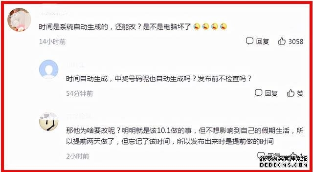 由此可见,因为相关工作人员的失误,把开奖结果发表时间改成了9月28日,由此闹出了很大的乌龙,这也是非常不应该的,据悉,相关发布人员现在也得到了处理,公司为此专门成立了应对这次舆情工作专班,连夜对舆情进行监控,并安排专职人员对舆情进行限流公关。 调查结果出来了,很多网友都表示理解,但也有网友对此提出了新的质疑,如有一位网友说问道,文章发布的时间是系统自动生成的,应该不能人工更改,是不是电脑坏了呢?