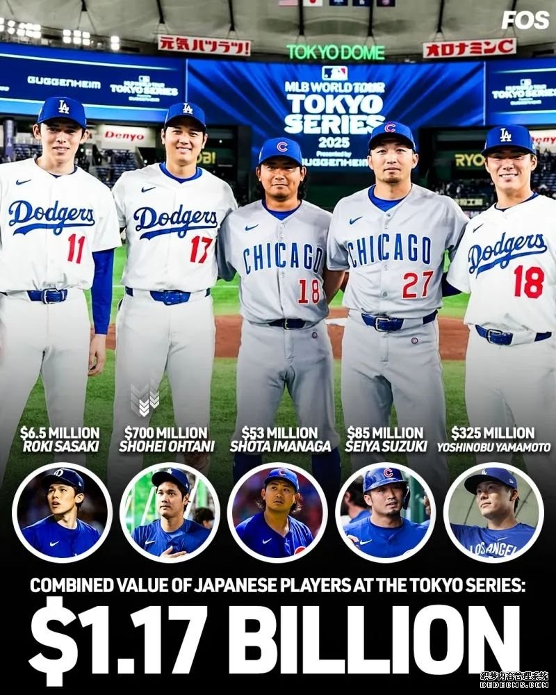 东京赛极为震撼的场面:观众不约而同地举起手机拍摄现场画面。 大谷翔平只是目前 15 名将在 2025 年参加美国职业棒球大联盟比赛的日本球员之一,这些新转会球员中最近的一位是同样签约道奇队的潜力新秀佐佐木朗希。23岁天才投手佐佐木朗希追随了大谷翔平和山本由伸的脚步,以自由球员的身份加入了道奇,延续了日本球员在道奇的成功传统。在此次东京赛第二战中,佐佐木朗希担任道奇队的先发投手。 本场比赛的历史性意义之一,正是洛杉矶道奇队的山本由伸与芝加哥小熊队的今永昇太,同时作为美国职业棒球大联盟赛季揭幕战首发投手,这是该赛历史上首次同时派出两位日本首发投手。这种安排可以说给足了日本面子,展示了日本球员在MLB中的重要地位。 拿下MLB史上最大的投手合同,山本由伸在12年3.25亿美元合同的首年表现十分亮眼,常规赛90局送出105次三振、自责分率为3.00,季后赛4场先发自责分率3.86。今永昇太新赛季表现惊艳,自责分率仅有2.91,并以国联最佳的6.21三振保送比完成173.1局投球,最终在国联新人王评选中位列第四。 铃木诚也是本次比赛五位日籍球员之一。虽然小熊队未能签下佐佐木朗希,但成功招揽了日本球员铃木诚也,成为球队表现最出色的球员之一,他在381场比赛中贡献55支本垒打、31次偷垒,打击三围为.278/.354/.470。这是日本棒球传奇球星铃木一朗2019年退役后,六年来首场在日本举行的MLB正式比赛。五位日籍球员最终让本届东京系列赛的看点拉满。