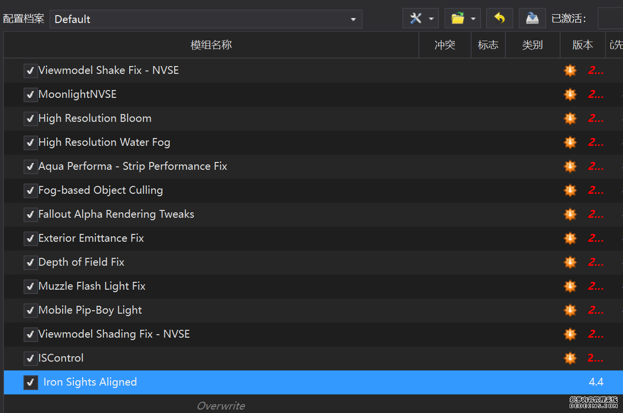 有问题首先查看常见问题及解答,如果无法解决则在介绍页面评论或者在q群问,不要在其他页面评论,更不要在知乎私信,很不方便 外挂汉化反馈QQ群:767971031 指南QQ群:761409041,提问前请至少完成基础部分,并确保没有安装不推荐列表中的任何内容 该部分中将对原版游戏存在的一些BUG进行修复,如前所述,这一部分虽然不是100%必须,但还是强烈推荐安装 ![]() 为了分类,在MO2右键-创建分隔符,命名为Bug修复,结果如图所示 新维加斯最大、最新的非官方补丁,对游戏的许多方面进行了修复 原址: https://www.nexusmods.com/newvegas/mods/51664?tab=files 下载主文件:YUP - Base Game and All DLC(第一个) ![]() 在MO2安装并勾选 利用NVSE的功能对一些BUG进行补充修复 原址: Unofficial Patch NVSE Plus 下载主文件:Unofficial Patch NVSE Plus ![]() 在MO2安装并勾选 修改游戏中的导航网格,从而改善AI寻路和战斗 原址: https://www.nexusmods.com/newvegas/mods/81003?tab=files 下载主文件:Navmesh Overhaul ![]() 在MO2安装并勾选 修复敌人生命值变更时1-10ms的固定卡顿 原址: Combat Lag Fix (NVSE) 下载主文件:Fast Weapon Lag Fix ![]() 使用MO2安装并勾选 修复了VATS显示命中率前1-2s的固定延迟 原址: VATS Lag Fix 下载主文件:VATS Lag Fix ![]() 使用MO2安装并勾选 修复浮点数精度丢失导致的机瞄不规则 原作者:WallSoGB 原址:Viewmodel Shake Fix - NVSE 下载主文件:Viewmodel Shake Fix - NVSE ![]() 直接使用MO2安装并勾选 使月亮而不是太阳在晚上充当光源 原址: https://www.nexusmods.com/newvegas/mods/77683?tab=files 下载主文件:MoonlightNVSE ![]() 在MO2中安装、勾选即可 提高泛光分辨率,减少锯齿、提高清晰度 原址: https://www.nexusmods.com/newvegas/mods/77933?tab=files 下载主文件:High Resolution Bloom ![]() 在MO2中安装并勾选 通过提高分辨率改善水中倒影的锯齿问题 原址: High Resolution Water Fog - Water Aliasing Fix 下载主文件:High Resolution Water Fog ![]() 在MO2安装并勾选 该mod和enb不兼容,指南后续也有与enb不兼容的mod,将不再进行提醒 本指南不推荐enb,如安装enb则不要向我求助 新维加斯的enb项目已经被enb作者放弃,因此有大量bug和兼容问题,想要提升视觉效果可以用天气mod、Reshade、NVR代替 通过禁用水LOD提升赌城区性能 原址: Aqua Performa - Strip Performance Fix 下载主文件:Strip Performance Fix ![]() 在MO2中安装并勾选 根据游戏的室外雾调整绘制距离,提高性能 原址: Fog-based Object Culling 下载主文件:Fog-based Object Culling ![]() 在MO2安装并勾选 修复透明渲染问题 原址: https://www.nexusmods.com/newvegas/mods/80316?tab=files 下载主文件:Fallout Alpha Rendering Tweaks ![]() 在MO2安装、勾选即可 修复导致室外粒子效果变黑的错误 原址: External Emittance Fix - NVSE 下载主文件:External Emittance Fix ![]() 在MO2安装、勾选即可 修复游戏中的景深效果问题和位深不足导致的褪色 原址: https://www.nexusmods.com/newvegas/mods/81200?tab=files 下载主文件:Depth of Field Fix ![]() 在MO2安装、勾选即可 修复了枪口火光光源在开火后不消失的问题 原址: https://www.nexusmods.com/newvegas/mods/81201?tab=files 下载主文件:Muzzle Flash Light Fix ![]() 在MO2安装、勾选即可 使哔哔小子灯光随着角色的动作而移动 原址: https://www.nexusmods.com/newvegas/mods/81203?tab=files 下载主文件:Mobile Pip-Boy Light ![]() 在MO2安装并勾选 修复了第一人称模型的镜面照明和枪口火光 原址: Viewmodel Shading Fix - NVSE ![]() 在MO2安装并勾选 对武器机瞄动画进行修复、支持游戏内调整机瞄位置 原址: ISControl Enabler and Ironsights adjuster (now ESPless) 下载主文件:ISControl ![]() 在MO2中安装,ISControl Enabler安装完成。