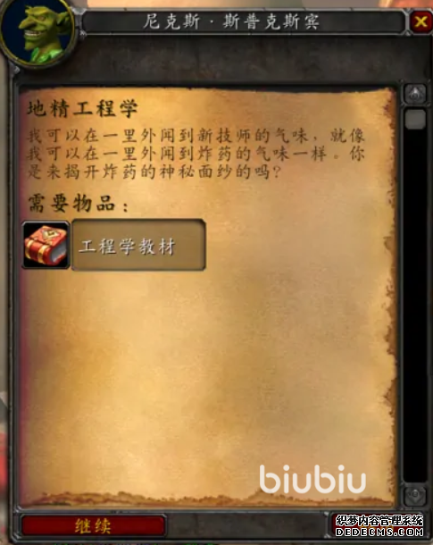 在接取任务后,下一步需要寻找到对地精工程学有深厚造诣的尼克斯·斯普克斯宾,在于他进行短暂的交谈之后,向他交付从廷克维斯处获得的工程学教材。