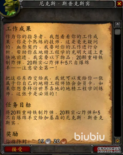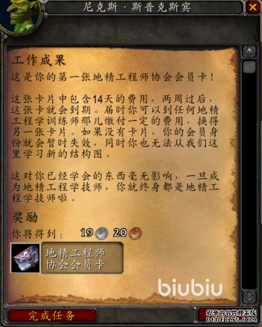 在签订了协议之后,将它交到斯普克斯宾手上,为了考验玩家作为工程师的能力,导师尼克斯·要求玩家准备20个重磅铁制炸弹,20个实心炸弹还有5个自爆绵羊,在准备好这些交给他之后,他会给玩家一张会员卡,有了它,玩家就可以前去拜访自己中意的地精工程学训练师。