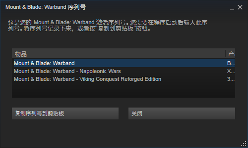 骑砍战团 ,维京征服,拿破仑战役分别有三个序列号。虽然我不能展示我全部的序列号,可是这三个光是第一位就不一样。cdkey是通过购买得到的,可以在骑砍中文站上买,也可以在steam上买。后两个是dlc,只影响游戏内容,第一个是游戏本体,也要一起买 |