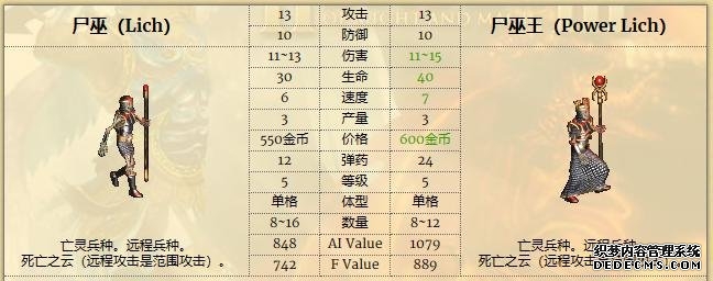 大家好,本期继续收尾最后一轮兵种评分,今天登场的部队是墓园的五级部队——尸巫(Lich),如喜欢相关文章,还请关注冰鸟! ![]() █ 不老不死的魅力怪物 “Lich”这个不死生物常常也被翻译为“巫妖”,与大多数来自古希腊神话,逼格甚高的怪物不同,这玩意完全是一个近代创建的奇幻生物。在古英语中,“Lich”本身就是尸体的意思,因此在最早的设定(例如龙与地下城规则中),用来描述那些在生前本身就是强大施法者的精英生物,基于某种特殊的原因,成为可以永生的不死生物,与那些低级的骷髅和僵尸不一样,尸巫通常认为会保留生前的意识和知识,也可以熟练的使用生前的技巧和法术,并且在不死的躯体下,永久的研究生前热衷的学问,也不失为一件幸事。 尸巫的形象一般极为骇人,所剩无几的肌肉依附在骨架上,相比于一般的骷髅兵一般都会穿着一些彰显身份的服饰,并且由于施法的需要,往往还配备有法杖和法袍等装备。眼睛早已腐烂,取而代之的是两团红色的幽冥,一般而言,普通的人类只要直视一只巫妖就会惊骇的逃跑,更不要说与之作战了。 骇人的尸巫虽然说尸巫很容易让人们联想到骷髅魔法师,但其实尸巫的逼格还是远超骷髅魔法师的,其中区别最核心的设定就是“护命匣”(Phylactery),意思就是巫妖的灵魂并不是如其它生物那样附在活动的躯体之上,而是被保护在保管良好的护命匣中,只要这个玩意不被破坏,巫妖即使死亡都可以很容易复活。一般而言,护命匣是一个结实的金属盒子,用写满魔法符文的纸条包裹起来,极为坚硬,普通的人类甚至都无法破坏它。 在流行的魔兽世界世界观中,“Lich”作为“巫妖”被大大丰富了背景故事,同样采用了毁灭“护命匣”才可以杀死巫妖的设定,并且从复活巫妖——克尔苏加德的情节中,展示了召唤并创造一个巫妖是多么的困难,强如巫妖王萨尔萨斯也需要借助太阳之井的能量才能完成这样的召唤。 擅长冰霜法术的巫妖魔兽中的巫妖常常使用冰霜魔法,但实际上这只是天灾军团在寒冷的诺森德比较符合氛围的一种设定,尸巫理论上可以使用任何不受限制的魔法,但由于这种部队往往因黑暗力量或者邪恶势力而召唤而来,因此搭配死亡或暗影系魔法也是符合人设的选择。 作为不死系生物中时髦而又富有魅力的怪物(事实上,尸巫的魅力值很高),在英雄无敌系列第二代开始,有鬼族时就已经登场,几乎没有缺席任何一代英雄无敌系列,其招牌特技是“死亡之云”,这个特技是如此的霸道,以至于英雄无敌六和七中将其移除,实在是有点遗憾。 █ 战力惊人的远程部队 英雄无敌3里的墓园城,尸巫是作为一种“种族”而非“职业”出现的,与人类和吸血鬼共同组成了鬼族的英雄池,其中尸巫特——摩多,石肤特——希斯由于带有“学习能力”这个神技(不老不死的尸巫确实很方便于孜孜不倦的学习),并不是大家所喜欢的英雄,而艾莎,纳格斯,山德鲁都还算是不错的英雄。 ![]() 我们回到英雄无敌3里的尸巫部队,相对于二代中的猥琐的“地鬼”,三代的尸巫明显气场强大,走路不可一世的步伐,攻击时恐怖的音效,都让这支部队吸引力更为强大。从数据上来看,尸巫无疑是极强的远程部队,攻击力和杀伤力居然和据点的劳模——雷鸟的数据一模一样,但一个是远程部队一个是飞行肉搏部队,就扫野的效率而言自然不能相提并论,同级远程相比的话,全方位碾压人类的祭祀,甚至相同造价的情况下祭祀也干不过尸巫王(活着就是没有死了给力),事实上,即使是和上一级的独眼巨人相比,尸巫王也占据良好的价格优势,独眼王以几乎两倍的售价,仅仅提供了高38%的输出,再考虑到独眼王极低的出场率,尸巫王几乎就是除泰坦以外,最高级的远程部队了。 ![]() 仅仅看输出能力,尸巫王的周产输出已经超过依靠数量和双发优势的神射手了,相较于明星部队——大精灵还是弱了21%,但在所有远程部队中也能算上第四的水平(落后泰坦,大精灵,独眼王),仅仅考虑单体目标的情况下,已经算是优秀表现了。而如果考虑到尸巫的特技:“能同时伤害目标周围所有有生命的目标”,那就妥妥的超模了,这个特技的效果和地狱玛格的火球攻击差不多,属于7格的范围性攻击,不同的是,这个范围杀伤不会伤害丧尸和无生命的部队,这也就完全规避了玛格火球那令人恶心的敌我不分,甚至火精灵都会被杀伤的恶心效果。突前的吸血鬼王和恐怖骑士完全不必担心被后方的火力覆盖波及,纵观整个游戏,这也是为数不多的带敌我识别机制的范围伤害了。 史蒂芬发现神器“黄金弓”尸巫的存在,对敌人的布阵产生极大了的威慑,常规为了保护远程部队的密集站位变得风险巨大,离谱的是,战争机器虽然属于无生命的部队,无法被波及,但尸巫却可以以它们为目标,杀伤周围的部队。尤其是对于双格部队较多,战争机器拉满的守城战,几乎没有腾挪闪躲的格子,往往也只能硬吃AOE攻击。另外,尸巫王的7速与大精灵同速,也超过很多慢速的步兵部队,其实不少部队往往还来不及走位就已经被死亡之云给波及了。如果波及到多个敌人,那尸巫的输出能力甚至已经超过了泰坦!有人说,玛格不是也可以火球攻击么,好像用处也不大嘛?抛开敌我识别系统的差距,玛格毕竟等级太低,周产输出连尸巫的一半都不到,自然无法相提并论。 尸巫的耐久能力也是一流水平,仅次于独眼巨人和泰坦,同周产比较,比大精灵耐