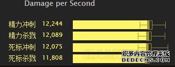 切割:使攻击速度提高50%,且能量恢复速度提高15%,根据消耗的连击点数延长持续时间。(LEG中为使攻击速度提高125%)