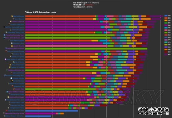 模拟环境为装等370人物,300秒帕奇维克式战斗 选用特质为神射手x3、裂肠者x2、听从我的召唤x1 属性权重 这部分争议可能比较大,所以这次Guide我打算这么说:会用simc的这部分可以不看 武器:永远选装等高的,装等一样选没精通的,没精通看的自身急速暴击全能哪个绿字低选哪个 护腕手套腰带腿鞋子:优先选装等高的,装等差不多选没精通的,没精通的看自身暴击全能哪个绿字低选哪个 戒指:优先选装等高的,装等差不多选没精通的,没精通优的看自身暴击全能哪个绿字低选哪个 饰品:以下信息搬运自HerDamge最近一次更新18年8月21日,仅供参考: 单目标: