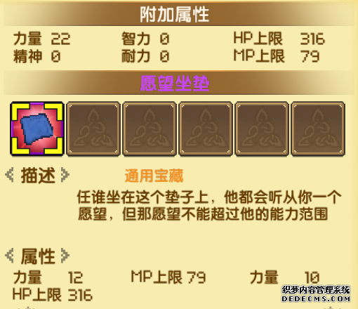 升级装备首先需要角色达到一定的等级,然后两条基础属性要加满,升基础属性用的是装备强化道具,可以通过副本获得。装备强化道具分为力量、耐力、精神、智力、HP、MP六大类,每种都有对应的副本。 基础属性加满以后,还要用到百形天晶。要特别注意,装备升级是有成功几率的!等级越高,成功率越低……失败了会消耗百形天晶,基础属性不受影响。 升级装备也会提升属性,努力给自己的娃敲件厉害的装备吧! 5、宝藏 敲黑板,重头戏来了!!宝藏,这可是能让小金人拉开差距的秘密武器!宝藏能为英雄提供附加属性,在前面4项都升满了的前提下,英雄强不强,就看宝藏的优与劣了!!