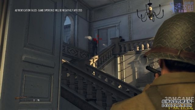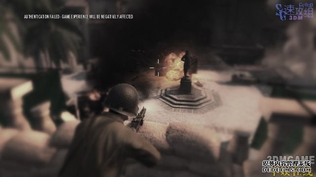 接下来的房间没有敌人,不过楼下会有大量敌人杀过来,到左边来使用MG42,打烂下边两辆卡车,对着一波又一波冲过来的敌人狂扫,最后敌人的坦克出现,一炮我、把我们都解决了。