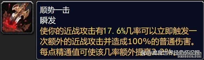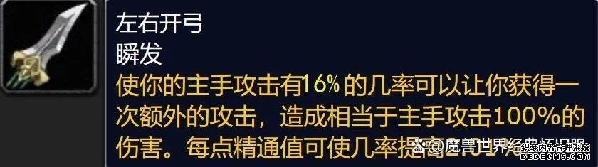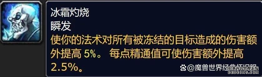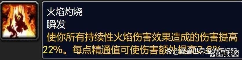 精通是魔兽世界大地的裂变资料片新增的次要属性(绿字属性),玩家在80级时可以学习精通被动技能,虽然巫妖王之怒版本不提供精通属性装备,但是可以通过前夕开放的重铸系统将装备属性重铸为精通。每个职业专精的精通效果不同收益也不同,一些职业精通是最佳绿字属性,另一些职业精通则不如暴击急速,下面就为大家介绍各职业专精的精通效果。 法师 奥术:法力专家 ![]() 使你所有的法术伤害提高最多12%,提高的百分比取决于法师所剩的法力值。每点精通值可使伤害额外提高1.5%。 火焰:火焰灼烧 ![]() 使你所有持续性火焰伤害效果造成的伤害提高0%。每点精通值可使伤害额外提高2.8%。 冰霜:冰霜灼烧 ![]() 使你的法术对所有被冻结的目标造成的伤害额外提高5%。每点精通值可使伤害额外提高2.5%。 术士 痛苦:剧痛 ![]() 使你造成的所有持续性暗影伤害额外提高13%。每点精通值可使持续性暗影伤害额外提高1.64%。 恶魔学识:恶魔学识大师 ![]() 使你的恶魔仆从以及你变形为恶魔时所造成的伤害额外提高16%。每点精通值可使伤害额外提高2.3%。 毁灭:炽热末日 ![]() 使你造成的所有火焰伤害额外提高11%。每点精通值可使伤害额外提高1.36%。 牧师 神圣:圣光回响 ![]() 使你的直接治疗法术会在6 秒内对目标进行持续治疗,治疗量为直接治疗法术治疗量的10%。每点精通值可使治疗量额外提高1.26%,持续6 秒。 戒律:护盾戒律 ![]() 使你的伤害吸收法术能力额外提高0%。每点精通值可使吸收量额外提高2.5%。 暗影:暗影宝珠能量 ![]() 使你的暗影宝珠造成的伤害提高11.7%。每点精通值可使伤害额外提高1.46%。 盗贼 战斗:左右开弓 ![]() 使你的主手攻击有16%的几率可以让你获得一次额外的攻击,造成相当于主手攻击100%的伤害。每点精通值可使几率提高2.01%。 刺杀:增强药膏 ![]() 使你的药膏造成的伤害额外提高28%。每点精通值可使伤害额外提高3.5%。 敏锐:刽子手 ![]() 使你所有终结技造成的伤害以及切割技能的效果提高0%。每点精通值可使伤害额外提高0.6%。 德鲁伊 野性战斗(熊):野蛮防御者 ![]() 使你的野蛮防御技能吸收的伤害提高32%。每点精通值可使吸收的伤害额外提高4.01%。 野性战斗(猫):剃刀之爪 ![]() 使你的流血技能造成的伤害提高25%。每点精通值可使加成效果额外提高3.1%。 平衡:日月齐暗 ![]() 使你的日蚀或月蚀的伤害加成额外提高16%。每点精通值可使加成效果额外提高2%。 恢复:共生 对已受到你持续治疗法术的影响的目标的治疗效果提高25%,每点精通值可使效果额外提高1.45%。 萨满 元素:元素过载 ![]() 使你有16%的几率触发元素过载。元素过载会使你所施放的一个闪电箭,闪电链或者熔岩爆裂法术对同一个目标触发第二个相似的法术,且不会消耗额外的法力值并造成75%的普通伤害,也不会产生威胁值。每点精通值可使元素过载触发几率额外提高2.01%。 增强:增强元素 ![]() 使造成的火焰、冰霜和自然伤害额外提高20%。每点精通值可使伤害额外提高2.5%。 恢复:深度治疗 ![]() 使你治疗法术的治疗效果额外提高最多24%,取决于你施法目标的当前生命值(目标生命值越低,治疗量就越高)。每点精通值可使治疗效果额外提高最多3%。 猎人 射击:野性箭弹 ![]() 使你的远程攻击有17%的几率可以立即触发另一次远程攻击.每点精通值可使触发几率额外提高2.1%。 生存:毒蛇精华 ![]() 使你造成的所有魔法伤害提高8%。每点精通值可使你造成的魔法伤害额外提高1%。 兽王:野兽控制大师 ![]() 使你的宠物造成的伤害提高13.6%。每点精通值可使宠物造成的伤害额外提高1.68%。 死亡骑士 鲜血:鲜血护盾 ![]() 每次你在鲜血灵气下使用灵界打击进行自我治疗时,你将获得一个伤害吸收护盾,吸收的伤害相当于50%的治疗量。每点精通值可使吸收的伤害提高6.26%。 冰霜:冰冷之心 ![]() 使你造成的所有冰霜伤害额外提高16%。每点精通值可使伤害额外提高2%。 邪恶:恐惧之刃 ![]() 使你所有暗影伤害提高20%。每点精通值可使暗影伤害额外提高2.5%。 圣骑士 防护:神圣壁垒 ![]() 使你的近战格挡几率额外提高18%。每点精通值可使格挡几率额外提高2.26%。 惩戒:圣光之手 ![]() 使你的圣殿骑士的裁决、十字军打击和神圣风暴造成16%的额外神圣伤害。每点精通值可使伤害提高2.1%。 神圣:光辉治疗 ![]() 你的直接治疗法术还会在目标身上产生一个吸收伤害的护盾,吸收的伤害相当于12%的治疗量,持续15 秒。每点精通值可使吸收量额外提高1.51%。 战士 战士:顺势一击 ![]() 使你的近战攻击有17.6%的几率可以立即触发一次额外的近战攻击并造成100%的普通伤害。每点精通值可使该几率额外提高2.2%。 狂怒:不羁之怒 ![]() 使可以激怒你的技能或需要激怒才能使用的技能效果提高11%。每点精通值可使激怒效果额外提高5.61%。 防御:精确格挡 ![]() 使你的格挡几率提高12%,精确格挡几率提高12%。每点精通值可使你的格挡几率提高1.5%,精确格挡几率提高1.5%。 以上就是大地的裂变全职业专精精通效果介绍,你认为哪个职业专精的精通效果最强大?欢迎大家在评论区留言讨论。 举报/反馈 |