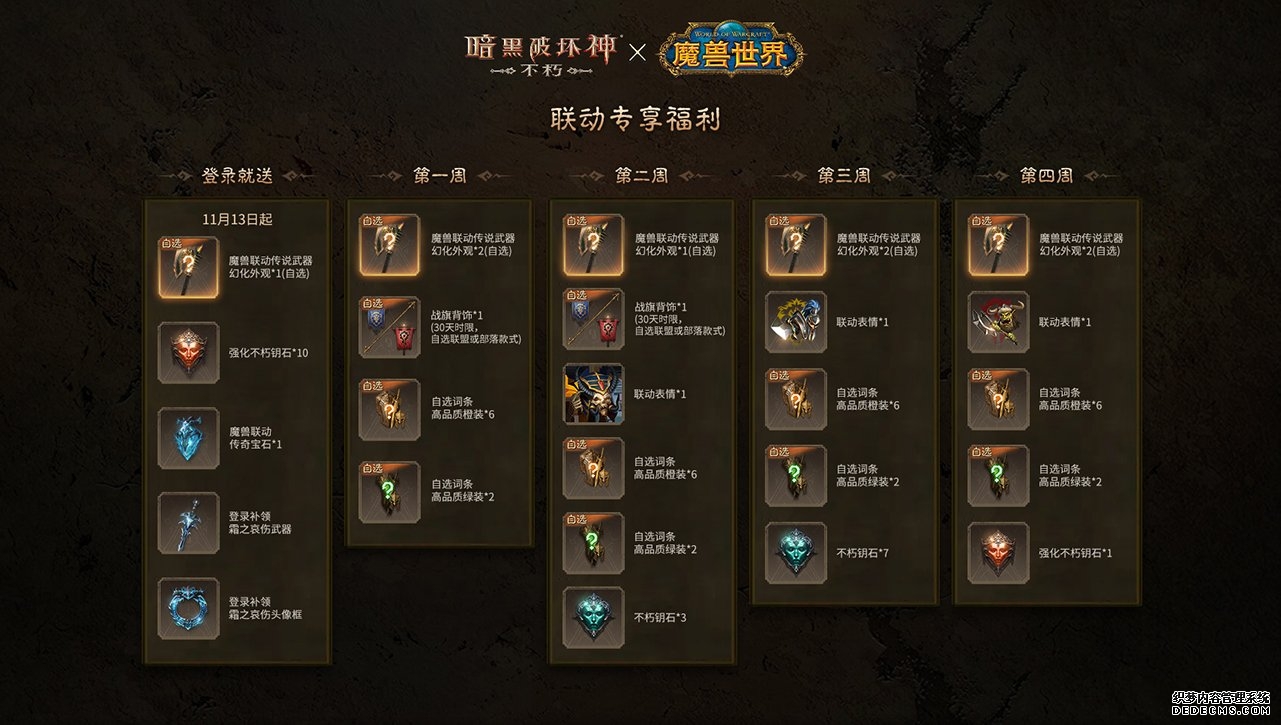 为了艾泽拉斯!暴雪旗下两大巅峰IP——《暗黑破坏神:不朽》×《魔兽世界》全球联动定档11月13日!“来吧,勇士们,释放你们的怒火吧!”勇闯联动副本【冰冠堡垒】,对决巫妖王!联盟VS部落,联动PVP战场【迷雾盆地】上演8V8公平竞技,以战旗为誓,为阵营荣耀而战!“你们这是自寻死路!”联动双形态传奇时装【背叛者之罪】破界登场,化身伊利丹!传奇橙武【灰烬使者】典藏版武器皮肤圣光降临,联动使魔皮肤【鱼人】搞怪现身。登录即送联动传奇宝石【哀伤之颅】、魔兽同款传奇武器幻化、10颗强化不朽钥石、【霜之哀伤】武器皮肤及头像框!参与【冰封王座归来】活动,将两大阵营战旗背饰、24件自选高品质橙装、8件自选高品质绿装、2款联动表情等丰厚豪礼收入囊中!速来预约联动新服【冰封王座】,驱逐天灾军团,守护庇护之地!大屏不朽,极致暗黑,PC旗舰版11月13日全面公测! 作为暗黑系列的全新手游作品,《暗黑破坏神:不朽》极致还原IP精髓特色,传承经典暗黑画风和恢弘世界观,再现畅爽战斗体验和沉浸的探索乐趣。在冒险之路上,你与其他冒险者亦敌亦友,或集结挑战凶险的地下城,或争夺“不朽者”的无上殊荣。当世界之石分崩离析,当威斯特玛黯淡无光,你,就是最后的希望! 《暗黑破坏神:不朽》官方网站:https://di.blizzard.cn/ 《暗黑破坏神:不朽》微信公众号:暗黑破坏神不朽 《暗黑破坏神:不朽》官方抖音:暗黑破坏神不朽 《暗黑破坏神:不朽》官方快手:暗黑破坏神不朽