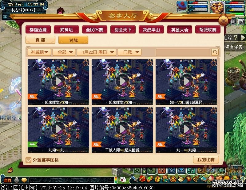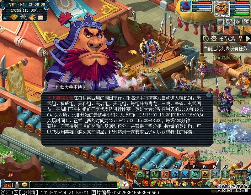 | [h1]英雄大会[/h1][h2]活动背景[/h2] 自从十九门派广收门徒以来,三界之中高手辈出,群雄并起。身怀绝技者想以武会友,而后起之秀欲寻机扬名,于是“天下英雄大会”应运而生,一时间侠义之士、英雄豪杰齐聚一堂,成就了三界瞩目的比武盛会。 活动时间:每月第四周周日下午 。 [h2]比武报名[/h2] 人物等级≥50级,每月第四周周五18点-周日13点期间,可在比武大会主持人(长安城 111,111)处报名。报名时需交纳等级×1000的金钱作为参赛费用。特别地,比赛过程中若被击出场地,两场累计至少可得到等级×3000的金钱作为参与奖励。 ![]() ![]() 特别提醒: [h2]比武介绍[/h2] (一) 比武分组:报名选手将按等级自动分到五个组别:50-69级为精锐组,70-89级为勇武组,90-109级为神威组,110-129级为天科组,130-159级为天启组,160-175级为天元组,每组分为青龙、白虎、朱雀、玄武四队。 ![]() (二) 进场时间:第一场进场时间13:00-13:30;第二场进场时间15:30-16:00。英雄大会各组入场NPC如下表所示: 序号 组别 等级 入场NPC 坐标 1 精锐组 50-69级 精锐组传送人 长安城(117,114) 2 勇武组 70-89级 勇武组传送人 长安城(102,64) 3 神威组 90-109级 神威组传送人 长安城(92,12) 4 天科组 110-129级 天科组传送人 长安城(64,46) 5 天启组 130-159级 天启组传送人 长安城(166,52) 6 天元组 160-175级 天元组传送人 长安城(202,70) ![]() 特别提醒:玩家可以在对应NPC处租赁修炼,只要一点费用即可临时提升角色修炼,还能获得相应修炼经验,一举两得。 (三) 比武时间:第一场13:30-15:30:青龙VS白虎、朱雀VS玄武;第二场16:00-18:00:胜者组对战、败者组对战。比赛正式开始之时将有系统提示,系统提示后即可ALT+A点击敌方阵营的人物切入战斗,战斗胜利可获得一定英雄大会积分,累计战斗失败2次则请出场外。 ![]() 特别提醒:各个比武组别报名人数过低时,由“青龙、白虎、朱雀、玄武四组”调整为“青龙、白虎两组”(即只分两组)。 (四) 比武规则 1. 相同代表队的成员可以自行组队,如果存在队员与队长分属不同代表队的情况,则系统会给出相应的提示信息; ![]() 2. 战斗失败累计两次将被送出赛场,胜利一方根据双方实力情况得到一定积分,并有30秒休息准备时间,期间不会被攻击,也不能攻击他人; ![]() 3. 比武场上允许观战,但如果观战期间被对方成员攻击,将自动退出观战并进入战斗。此外,比赛开始30分钟以后,战斗失败离场的玩家,可在各组传送人处观看场地内正在进行的战斗; ![]() 4. 当有一方队员均被击败出场,则判另一方获胜;如果比赛结束时双方都有队员在场,则比较各自组的场内剩余人员数量,剩余人员数量较多的组获胜(战斗中的倒地玩家不计入场内剩余人数);如果剩余人员数量再相同,则由系统随机判断胜利方。 特别提醒:精锐组、勇武组、神威组、天科组、天启组、天元组中如果出现一组报名人数不足40人情况,该组比赛将自动取消;入场比赛时不能有运镖任务和跑商任务在身,并且需要满足人气≥500,阴德≥300(隐藏属性,无法查询阴德)。 [h2]比武奖励[/h2] (一) 英雄币 1. 英雄币的获得:英雄大会活动中与其他玩家对战,战胜可获得一定的英雄币及比武积分。 ![]() 2. 英雄币的作用:可以找比武大会主持人(长安城 111,111)兑换人气、阴德、物品奖励。 序号 奖励种类 消耗 1 慈善捐款(增加5点人气) 1 0英雄币 2 拜神祈福(增加5点阴德) 2 0英雄币 5 天赋符 3 0英雄币 7 星辉石(1级) 3 0英雄币 3 清灵净瓶 9 0英雄币 4 玉葫灵髓 150英雄币 6 玲珑宝图 225英雄币 8 易经丹 450英雄币 (二) 英雄大会积分 1. 比武积分获得:①英雄大会比赛中战斗获胜可获得; ②第一场比赛结束后,进入优胜组的玩家额外增加10分; ③拾取英雄大会获胜宝箱时,有几率获得。 ![]() 2. 比武积分作用:①每期活动中,各组积分排名在前五名的玩家,可得到额外的称谓和物品奖励; ②总积分达到一定程度时可获得特殊称谓; ③可在比武大会主持人(长安城 111,111)处查询历史积分榜和上届比武积分榜。 特别提醒: (三) 宝箱奖励:每场比赛结束后,场内将出现一定数量的大宝箱和小宝箱,供胜利方的成员拾取,箱中可能有经验、金钱、活动积分以及各种珍奇物品奖励,拾取后玩家将被送出赛场(拾取宝箱要求个人本场积分≥10分)。‘ (四) 获胜奖励:18:00活动结束之后,根据同组各参赛队的比赛成绩,除了两场均负的队伍外,其它参赛队成员可以找比武大赛主持人(长安城 111,111)领取一定的获胜奖励。此外,各组的状元、榜眼、探花、武进士只在优胜组内产生。 ![]() [h2]比武称谓[/h2] (一) 分组称谓:进入比武场后,会自动获得代表队(青龙、白虎、朱雀、玄武)对应称谓(如:青龙代表队成员),该称谓不可被替换。 ![]() 特别提醒:分组称谓比武期间不可被替换,出场后自动消失(如异常离场可能导致称谓不消失,可下线重新登录解决)。 (二) 优胜称谓:两场比赛都优胜的组别,积分排名前五的玩家,还将得到额外的称谓和物品奖励。具体名次及其匹配称谓如下: 1. 第一名:获得英雄会状元称谓(对应组别,下同),奖励同玩家等级随机制造指南书一个。(根据玩家等级取整,最高不超过130级) 2. 第二名:获得英雄会榜眼称谓,奖励同玩家等级百炼精铁一个。(根据玩家等级取整,最高不超过130级) 3. 第三名:获得英雄会探花称谓,奖励同玩家等级-10的制造指南书一个。(根据玩家等级取整,最高不超过120级) 4. 第四名、第五名:获得英雄