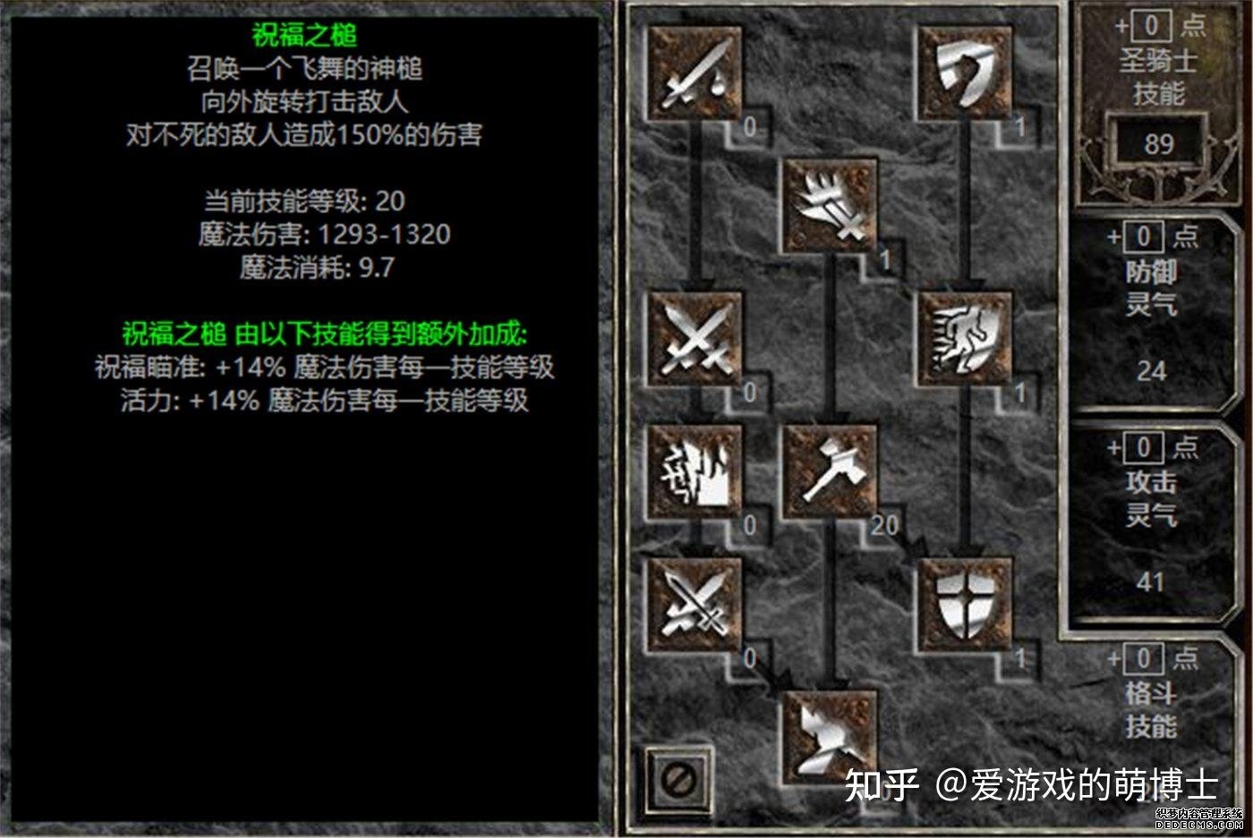 稍早,博士已经把《暗黑破坏神2》重制版《暗黑破坏神2:复活》中冰火法和无限电法的简要攻略分享给大家了,前者适合前期拓荒,后者适合后期爽快刷怪,各有千秋。有玩家吐槽我写的东西过于简单,所有人都知道。对于这个说法,博士不敢苟同,一方面出于严谨,我在标题上特意加了“简要”两个字。另一方面,文章的目的也是给游戏新手一个指引,勾起一下老玩家的回忆罢了。《暗黑破坏神2》内容博大精深,玩法丰富,详细的细节岂是一篇小文章就能说明白的。 ![]() 言归正传,法师的两个主要流派已经介绍完了,今天博士想说一下圣骑士。相比法师,祝槌圣骑士是一个更加全面的流派玩法。值得一提的是:谜团符文组出来之后,让祝槌圣骑士飞得不比法师慢,解决了腿短的问题,成为了《暗黑破坏神2:复活》中带练、清图、解任务的最佳职业之一。当然,前提是你凑好了谜团符文组,没有的话,还是冰火法更适合拓荒。 祝槌圣骑士,顾名思义,技能点数和人物点数都要围绕“祝福之槌”这个技能来分配。祝福之槌的效果是召唤一个飞舞的神槌向外旋转打击敌人,在画质还不太好的那个年代,神槌如同鸡腿一般,因此祝槌圣骑士战斗的时候,只看到鸡腿在漫天飞舞,非常厉害的同时又有点搞笑!祝槌圣骑士大概是在78级左右成型,也就是把祝福之槌以及协同技能与前置技能给点满,最大化祝槌的战斗力。 ![]() 前面说了,这种玩法的一个核心技能就是祝福之槌,而另外一个解决腿短的核心技能自然是通过谜团符文组来获得的“传送(Teleport)”。而想要让祝福之槌的伤害最大化,必须让装备上技能等级尽可能高,人物的施法速度尽可能快。一般来说,快速施法速度撑到125%就成型了。 ![]() 配点顺序方面,由于谜团符文组不是那么好获得的,所以你非要用圣骑士来拓荒的话,博士建议使用攻击灵气系的白热圣火丁起家,等到有了一定的等级,达到了一些装备的时候再改成祝福之槌流派。 ![]() 其他技能方面,武器攻击类的技能都不建议点,我们只要鸡腿都好了。如果你喜欢圣火、重击等等技能的话,还是另外练一个专门的角色,体验会比较好。 ![]() 作为偏魔法的玩法,精神符文组自然是祝槌圣骑士可以从小用到大的符文组,其提供了大量的抗性、技能等级提升以及高速施法属性。圣骑士的四洞专用盾自带高抗性的基底,和精神符文组非常契合,博士建议先凑出一把精神长剑和一面精神盾,基本就出道了。 ![]() 在取得谜团符文组后,人物装备也有了高施法速度,祝槌圣骑士剩下的事情就是单纯去把抗性,血量和技能等级尽量提升了。一般来说,老玩家玩祝槌圣骑士都不太会去追求什么极致的好装备,因为这个玩法对装备要求没那么高,穿什么装备都很强,是专业的保姆角色,没必要投入过多的精力和资源。 ![]() 最后,祝槌圣骑士成型之后,既可以和冰火法一样去墨菲斯托、奶牛关等地刷怪之外,还可以去地狱难度的混沌避难所与毁灭的王座这两个高难度的场景打装备,祝槌圣骑士可是攻击力强悍,防御力也不错的职业。 (责任编辑:admin666) |