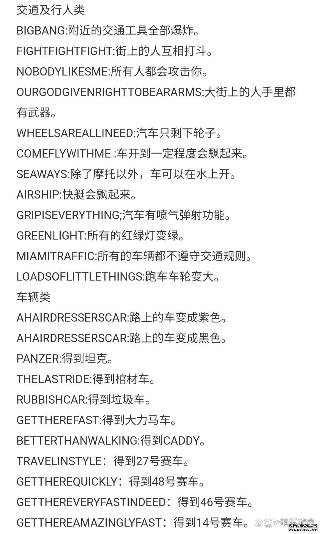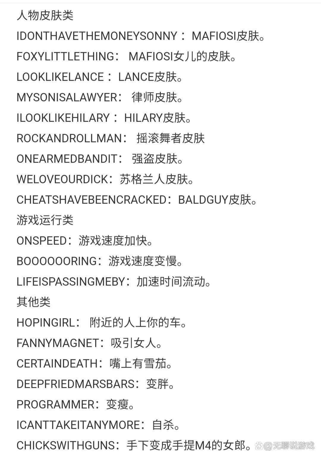 罪恶都市全部秘籍如下: ![]() ![]() ![]() 1、在游戏内使用秘籍比较简单,在键盘上快速打出相应的代码即可。 2、罪恶都市秘籍功能十分齐全,改变天气、消除通缉、控制行人和城市等都可通关秘籍实现。 3、与后面部分续作游戏不同的是,罪恶都市有一部分秘籍可以在任务时使用,且不会影响任务进度。玩家先使用秘籍再进入任务,秘籍也不会失效。 4、游戏重启后秘籍全部失效,需要重新输入。 ![]() 如果问“小时候玩的哪款游戏最让你难忘?”,很多玩家可能都会想起《罪恶都市》——当年的这款游戏,惊艳了我们的童年。 这款发行于2002年的游戏,直至今日还被玩家津津乐道,更有玩家将其通关了一遍又一遍。在当时电脑还没普及的情况下,这款游戏却成为了很多人共同的童年回忆。用现在的眼光来看,游戏的画质确实很渣,但是游戏本身超高的自由度,完整的游戏剧情以及沉浸式的体验感,与现在的游戏相比也毫不逊色。除了游戏本体的精彩外,秘籍的额外玩法也是很多玩家的童年回忆。 ![]() 罪恶都市的秘籍功能十分齐全,小到改变衣服,大到控制行人、操控时间等,都可以通过秘籍实现。很多玩家可能都还记得:PANZER——坦克,SEAWAYS——车在水上跑,BIGBANG——车辆爆炸,这些代码,大大扩展了游戏的可玩性,很多玩家还把代码抄在纸上背熟。利用代码玩家可以操控汤米在罪城无所不能,罪城为玩家提供了一个平台,很多现实中做不到的事情都能在这里实现。秘籍一直作为游戏特色,也被沿用到后续游戏中。 ![]() 以上就是本期内容,感谢观看。 举报/反馈 |