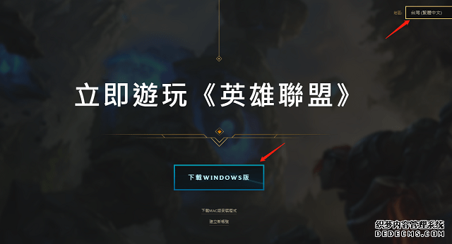 4、点击“下载WINDOWS版”,注意右上角地区确定选择台服;