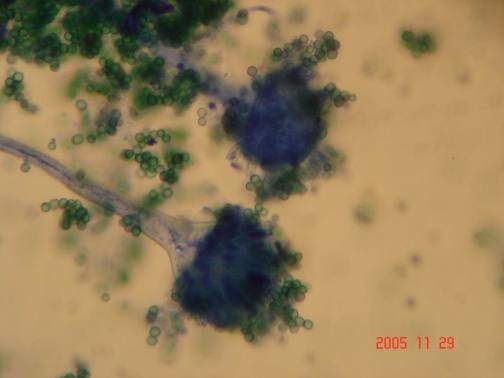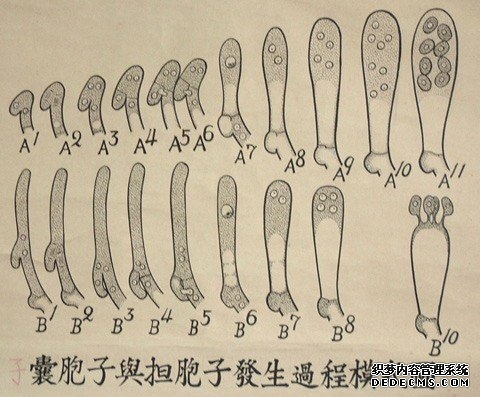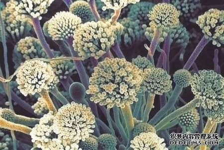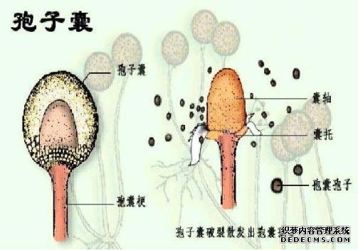 播报 编辑 ![]() 霉菌孢子各种形态图(3张) 霉菌的孢子具有小、轻、干、多以及形态色泽各异、休眠期长和抗逆性强等特点。霉菌孢子形态常有球形、卵形、椭圆形、礼帽形、土星型、肾形、线形、镰刀形等 [4]。霉菌孢子很小,直径只有0.01mm-0.1mm [5]。每个个体所产生的孢子数量,经常是成千上万的,有时竟然达到几百亿、几千亿,甚至更多。孢子的这些特点,都有助于真菌在自然界中随机散播和繁殖 [4]。 霉菌菌落最初常呈浅色或白色,当长出各种颜色的孢子后,相应呈现黄、绿、青、棕、橙、黑等各色,这是由于孢子有不同形状、构造与色素所致。 [6] 有的霉菌孢子在-150℃仍能生存,高温170℃干热或110℃湿热才能将它杀死。 [5] 播报 编辑 无性孢子是霉菌进行繁殖的主要方式。这些孢子有如下几种。 [6] 节孢子( arthrospore) 节孢子由菌丝断裂而成,又称粉孢子或裂孢子。节孢子的形成过程是菌丝生长到一定阶段,菌丝上出现许多横隔,然后从横隔处断裂,产生许多形如短柱状、筒状或两端呈钝圆形的节孢子。 [6] 游动孢子( zoospore) 游动孢子产生在由菌丝膨大而成的游动孢子囊内,孢子通常为圆形、洋梨形或肾形,具一根或两根鞭毛,能够游动。鞭毛的亚显微结构为9+2型,产生游动孢子的真菌多为水生真菌,大多数为鞭毛菌亚门的真菌。 [6] 厚垣孢子( chlamydospore) 厚垣孢子又称厚壁孢子。它是由菌丝中间(少数在顶端)的个别细胞膨大,原生质浓缩和细胞壁变厚而形成的休眠孢子。厚垣孢子呈圆形、纺锤形或长方形,它是霉菌度过不良环境的一种休眠细胞,寿命较长,菌丝体死亡后上面的厚垣孢子还活着,一旦环境条件好转就能萌发成菌丝体。 [6] 孢囊孢子( sporangiospore) 孢囊孢子孢囊孢子圆形,无鞭毛、不能运动,在空中随风飘荡,遇到适宜的环境,可萌发并形成新的菌丝体。 [6] 分生孢子( conidiospora) 分生孢子是霉菌中常见的一类无性孢子,是生于菌丝细胞外的孢子,所以称为外生孢子。分生孢子着生于已分化的分生孢子梗或具有一定形状的小梗上,也有些真菌的分生孢子就着生在菌丝的顶端。 [6] 曲霉(Aspergillu.s)和青霉(Penicillium)大多以分生孢子萌发为菌丝体,在气生菌丝上产生分生孢子梗,在分生孢子梗上串生许多分生孢子,分生孢子在适宜的环境中萌发为菌丝体。 [6] 霉菌有性繁殖靠产生有性孢子进行。真菌有性孢子是经过两个性细胞或菌丝的结合而形成的。有性孢子的形成过程一般经过质配、核配和减数分裂3个阶段。常见的真菌有性孢子有卵孢子、接合孢子、子囊孢子和担孢子。 [6] 卵孢子( oospore) 卵孢子是由两个大小不同的配子囊结合发育而成的。小型配子囊称为雄器,大型的配子囊称为藏卵器,藏卵器中的原生质与雄器配合以前,收缩成一个或数个原生质团,称卵球。当雄器与藏卵器配合时,雄器中的细胞质和细胞核通过受精管而进入藏卵器与卵球配合,此后卵球生出外壁即成为卵孢子,卵孢子的数量取决于卵球的数量。 [6] 接合孢子( zygospore) 接合孢子是由菌丝生出的形态相同或略有不同的配子囊( gametangium)接合而成的。接合孢子的形成过程是两个相邻的菌丝相遇,各自向对方生出极短的侧枝,称为原配子囊(progametangium)。原配子囊接触后,顶端各处膨大并形成横隔,即为配子囊,配子囊下面的部分称为配囊柄( suspensor)。相接触的两个配子囊之间的横隔消失,其细胞质与细胞核互相配合,同时外部形成厚壁,即为接合孢子。适宜的条件下,接合孢子可萌发成新的菌丝体。 [6] 子囊孢子 子囊孢子形成于子囊中,先是同一菌丝或相邻的两菌丝上的两个大小和形状不同的性细胞互相接触并互相缠绕。接着两个性细胞经过受精作用后形成分枝的菌丝,称为造囊丝。造囊丝经过减数分裂,产生子囊。每个子囊产生2-8个子囊孢子。在子囊和子囊孢子发育过程中,原来的雄器和藏卵器下面的细胞生出许多菌丝,它们有规律地将产囊丝包围,于是形成了子囊果。子囊果有3种类型:第一种为完全封闭圆球形,称为闭囊壳;第二种有孔,称为子囊壳;第三种呈圆盘状,称为子囊盘。 [6] 担孢子( basidiospore) 囊孢子与担孢子播报 编辑 霉菌生存于湿润温暖的环境中,但孢子几乎可以生存在任何环境中,当条件适宜时,它们就会迅速生长繁殖。 [7] 播报 编辑 霉菌孢子播报 编辑 1.印片法观察 孢子梗(2)将印有孢子的一面朝下,放在滴有一滴美蓝染液的载玻片上,静置3min,使放线菌和霉菌孢子可着色。 (3)用油镜观察孢子的形态结构。 [9] 2.凹玻片法观察 (1)取一灭菌的凹玻片,于凹窝内滴加少量熔化的固体培养基,待凝。 (2)接种少许菌种,覆盖一灭菌的盖玻片,盖玻片与凹窝间稍留一点空隙以便通气。 (3)将凹玻片置无菌平皿内,皿内垫一块潮湿的脱脂棉以维持湿度,25-28℃恒温培养3天。观察生长状况。 [9] 3.盖玻片法观察 (1)将菌种均匀的涂布在固体平板培养基上。 (2)用镊子夹一张无菌盖玻片斜插入平板内的培养基中,插入深度为盖玻片高度的1/2或1/3。 (3) 25-28℃恒温箱中培养5-7天。 (4)用镊子取出盖玻片放在载玻片上,用低倍镜或高倍镜观察菌丝及孢子的情况。 [9] 播报 编辑 由于不同种属的霉菌产生孢子的方式、孢子的形态或产生孢子的器官不同,所以霉菌孢子的形态特征和产孢子器官的特征是霉菌分类、鉴定的主要依据。 [2] 播报 编辑 ![]() 霉菌孢子(5张) 空气中飘浮着的霉菌孢子经常掉落在有机物上,如