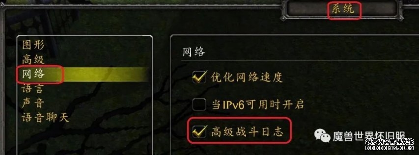 下面进入游戏,ESC→系统→网络,勾选高级战斗日志。这一步非常重要,不可以省略。