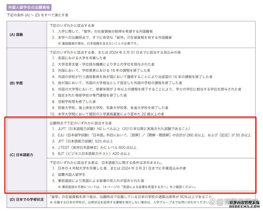 一、留学消费降级,学费反涨 消费降级是全社会普遍的现象,但是国人还是秉着“再苦不能苦孩子,再穷不能穷教育”这个观念,愿意在孩子的教育上进行投资。只不过,最近就连赴美留学的高净值家庭也开始询问起了费用,要知道换在以前,留学一年百来万的开支对于这样的家庭来说简直如同九牛一毛。深切感受到整个留学界都变天了! 本来日本留学是所有留学国家中性价比最高的,“花小钱奔大前途”是普通家庭对日本留学的直观感受。然而,自今年3月起,日本文部科学省决定:国公立大学学费上涨20%。 首当响应这个决定的就是亚洲第一学府,日本排名第一的东京大学。 ![]() (▲图源东京大学官网) 东大于2024年9月24日正式决定将学费提高20%,年额为642,960日元(现为535,800日元)。学士课程从2025年度开始,硕士课程从2029年度入学学生开始适用修改后的学费。 不过当前汇率还算偏低,学费看似上涨,对于留学生来说,基本保持原状,影响不是很大。但后续汇率回升,那我们就不得而知了,留学生学费势必水涨船高,未来会有更多学校跟着东京大学的步伐,对学费实施涨价是不争的事实。 可哪怕日本的院校将学费上涨,放眼留学界,日本留学的性价比依旧抗打。一年留学开销在15-20万左右,而且在日本是允许留学生一周能打28小时以内的工,时薪也是在1000~1200日元左右。毕业后找工作,拿永驻也比较容易,日本老龄化严重,职位空缺,急需人才,也不会像国内那么卷,所以低预算的家庭,都会优先考虑日本留学。 2、考学变卷,日语要求变高 日本目前正处于少子老龄化社会,现在本土的应届高中生96万,而且是逐年下降的趋势。所以众多私立大学将目光纷纷投向了留学生生源,开设了很多名校预科,名校直申。即在国内达到一定日语水平,便可直接进入日本的大学读书,省去语言学校这一过程。对于经济紧张的家庭来说,跳过语言学校,至少也能省下个十来万。这也导致了日本考学变卷! 据日本学生支援机构(JASSO)调查统计,2024年11月的日本留学生EJU考试人数首次突破2万1610人。创下历史新高! ![]() 大学院也明显可以看到考试人数逐年增加,竞争越来越大,题目比前几年的明显难了一些了。 (▲早稻田大学校理工学研究科过去考题)一般日本许多学校,尤其是私立大学的大学院每年会分成3期或4期来招生。以往,后面几期都还有少量名额,但随着日本留学生人数的增加,很多学校在1期就把名额招满了,这就意味着将不举行后期的考试和招生。所以夏季考比冬季考重要!同学们一定要提前做好准备! 不过,比起本土的日本考生,作为一名留学生,日本院校则更看中我们的日语水平,甚至也要求英语有一定水平。 ![]() (▲早稻田大学校政治经济学部 日语考题) ![]() (▲早稻田大学校部分专业成绩要求) 就拿艺术类院校来说,以前对于艺术生的要求会相对文、理科生低一点,主要考察的还是专业技术。可现在,继女子美术大学之后,京都精华大学、多摩美术大学都要求日语要有N1成绩!更别说帝大一类这样的日本名校了! ![]() (▲女子美术大学 外国留学生选拔 日语要求) ![]() (▲京都精华大学 大学院入试要求) 甚至连专门学校的门槛也提高了!今年4月起,日本入管局对这一流程进行了重要调整:明确规定,申请专门学校前,学生必须在日本的语言学校至少完成一年的学习。 所以无论文理科还是艺术,想冲名校还是想早点就职的专门生,对日语这块的要求只会越来越高。日语必须要有夯实的基础,除此之外,部分专业也需要提供英语成绩。建议大家早做准备,在国内提前准备好这块,尤其是加强听说和写作的能力,才能尽快升学。 成绩不理想如何申请日本留学: 成绩不理想可以考虑中外合作办学项目,通过国内大学与韩国大学的合作,为学生提供一种留学途径。学生在国内完成部分学业后,再转入韩国大学继续学习,毕业后获得国外大学的学位。 常见的模式包括2+2、3+1等,学生在国内学习两年或三年后,转入韩国大学完成剩余学业。 优点:申请难度较低、留学费用相对较低,适合成绩一般或语言能力不足的学生。 适合人群: 高中毕业生或专科生,尤其是那些高考成绩不理想或韩语基础薄弱的学生。 点击下方小程序查看中外合作日本留学院校详情 (责任编辑:admin) |