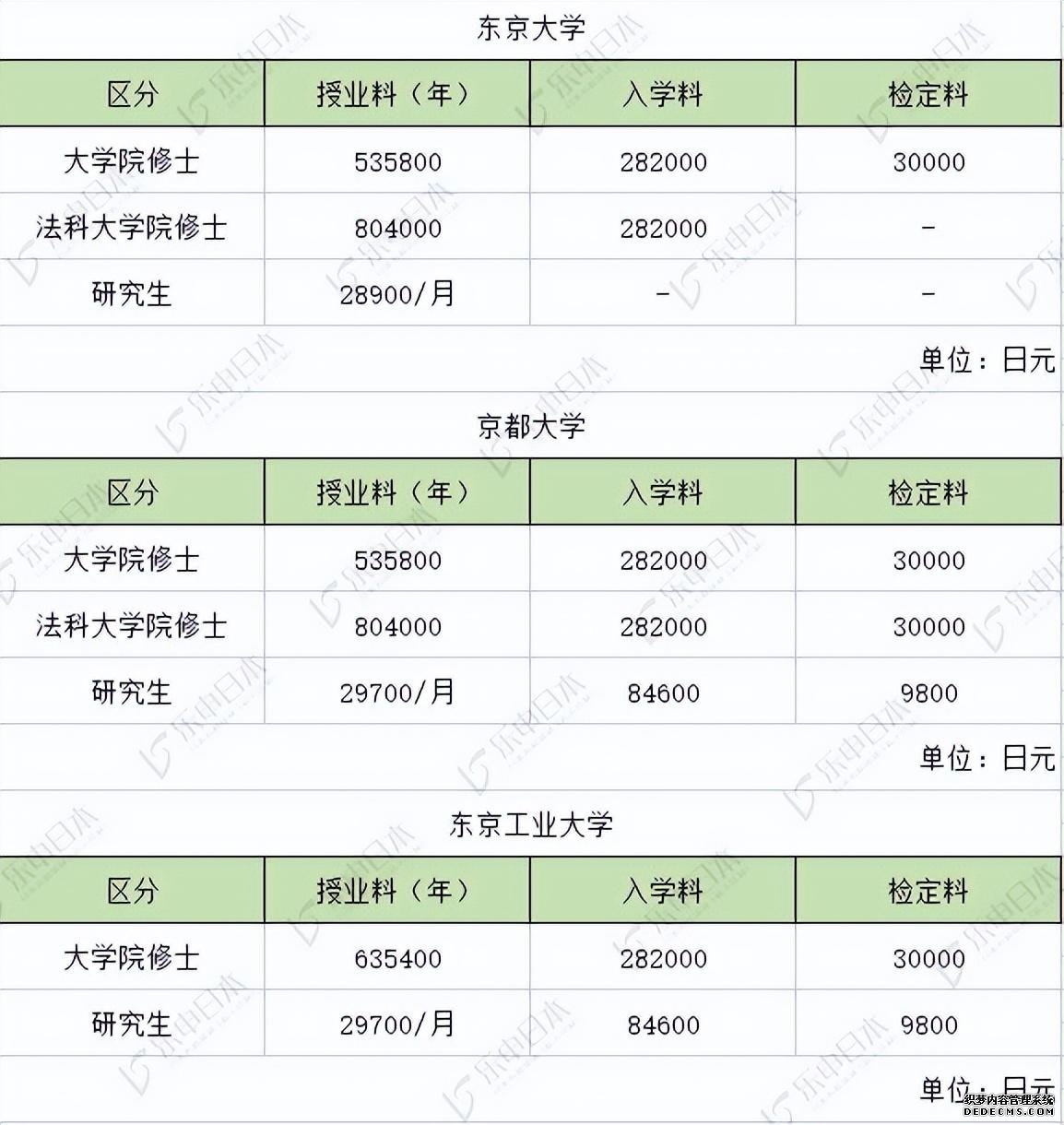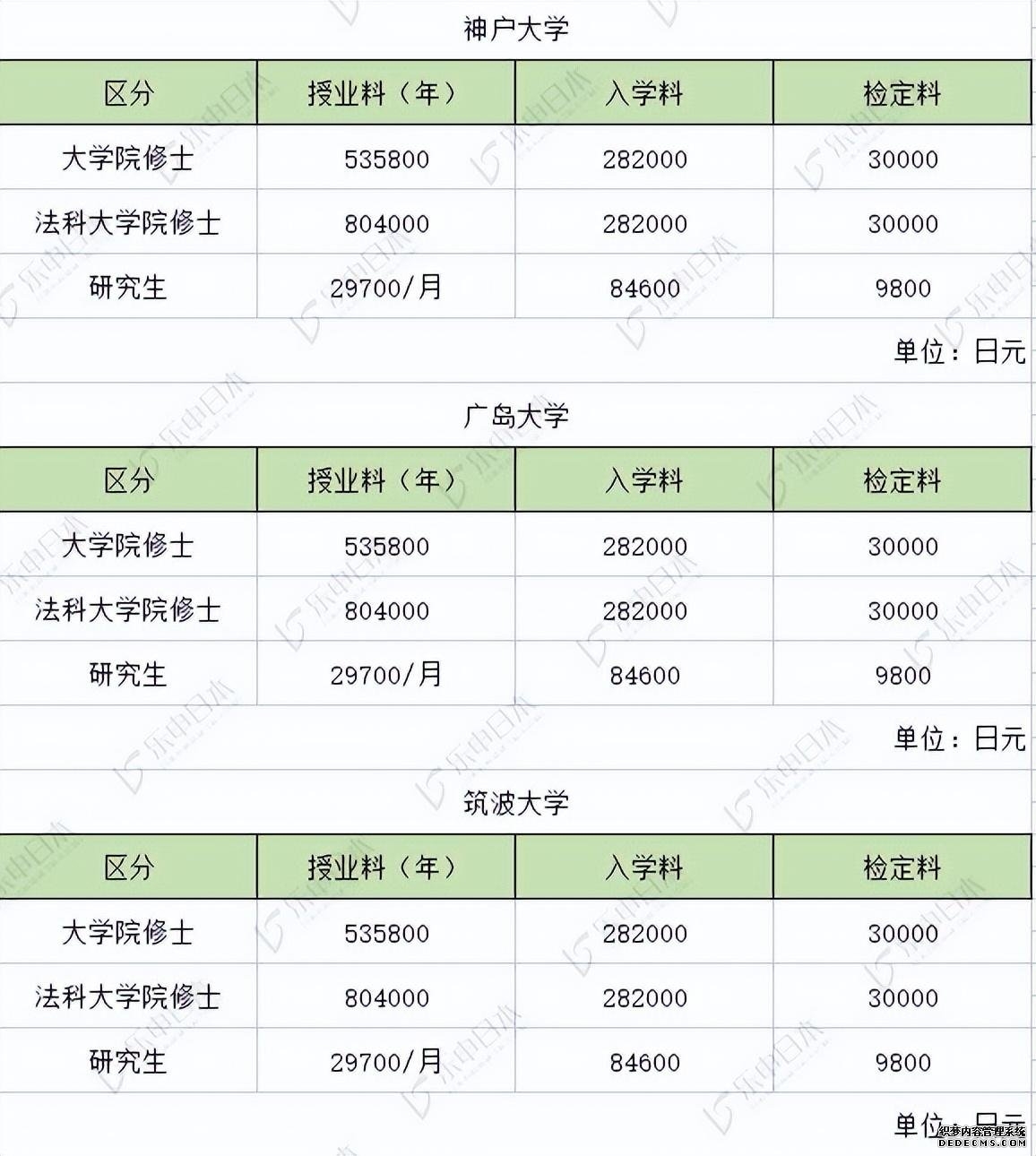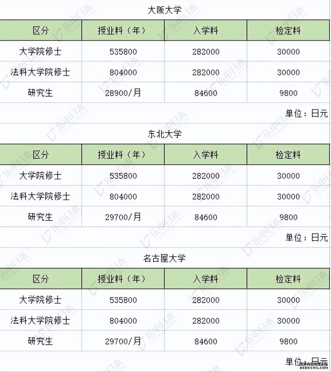 日本国立大学一直是高学术、高性价比的代言,给大家汇总了排名前12所国立大学最新入学金、学费情况。日本国立大学院的性价比>公立大学院>私立大学院。 国立大学的修士学费 基本上是统一的,入学料和检定料都是入学的时候只交一次。 入学料:282,000日元 检定料:30,000日元 学费:535,800万日元/年 两年的总学费是:1,383,600日元(两年) 其中法科(法学)大学院修士学费 比较特殊,学费是804,000万日元/年,两年的总学费是:1,920,000日元(2年) 东京工业大学修士学费也会偏高一些 入学料:28,200日元 检定料:30,000日元 学费:635,400日元/年 两年的总学费:1,329,000日元(2年) 学费减免: 国立大学修士学费减免比较容易申请,可减免30%,或50%,或100%减免。 奖学金: 根据途径分:国奖、校奖学金、财团提供的奖学金。 根据是否归还分:借贷型、给付型(学费减免)。 再往下细分的话,不管国奖还是校讲或是财团奖都有很多别类,额度也各有不同。以下以国家设置的JASSO奖学金为例,下图供大家参考。国家奖学金的基准主要为学力(学习成绩)、家计(家庭状况)。 ![]() 打工收入: 日本是允许学生通过打工来了解日本社会或减轻生活压力的,大部分工作的平均工资是每小时1000日元左右。打工的前期是取得了“资格外活动许可”,每周打工不可以超过28小时。 生活费(衣食住行等其它开销): 在东京一个月生活费约1万人民币左右(房租4000+水电燃气1500+伙食3000+通勤1500+娱乐600)。如果在娱乐和房租上减少一些,在家做饭多一些,能省个一两千人民币左右。 研究生学费: 研究生即修士预科,它的学费相比修士是非常低的,其中东京大学和大阪大学研究生学费最低:28,900日元/月。其余学校研究生学费均是29,700日元/月。 以东京大学为例, 入学料:84,600日元 检定料:9,800日元 半年学费:173,400日元 半年的总学费是:267,800日元。 大部分研究生都是半年或者3个月一交,一年一交的非常少。 ![]() ![]() ![]() ![]() 举报/反馈 |