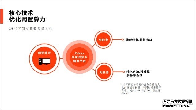 往期阅读: PekkaCCNCEO-摩根士丹利高级副总裁:CCN是元宇宙的基石 PekkaNetwork(ComputeCoin)白皮书 PekkaNetwork(ComputeCoin)美国分布式计算的专利 Pekka(CCN)核心技术-可信诚实证明 (PoH)共识算法美国专利 (Pekka)EntrapNet:用于无信任计算的基于区块链的验证协议 PekkaNetwork( CCN)与Swarm建立独家合作伙伴关系 Pekka(Computecoin)提供在元宇宙中开辟新天地的原始力量 Pekka科创未来:分布式算力共享和存储市场,将打造新一代IT基础设施 元宇宙之二:算力重构,通向Metaverse的阶梯 投资方向:中美巨头押注元宇宙,底层技术路径一样,中国缺乏新型硬件计算平台 来源:叭拉叭拉Block 原文 ComputeCoin Network 编译 Elem 引言:ComputeCoin是以打造元宇宙基石为旨趣的分布式云计算平台。CCN将统筹与调度各去中心化应用,如swarm、fil、cru等,从而共同缔造全新的云计算网络。这好比把CCN作为高德地图,它可以将入驻这一系统的汽车共享平台资源进行整合与分发。如此一来,用户借助高德地图就可以迅速呼叫身边的出租车——在提供便捷服务的同时也使资源实现最大化利用。