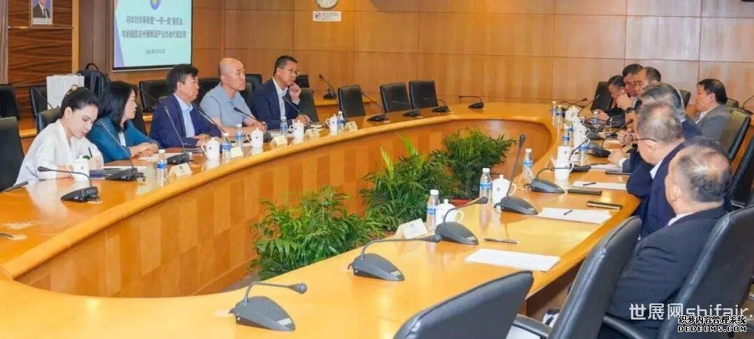 马中总商会副总会长暨海鸥冷气电器有限公司董事 戴炳煌主持交流会并致辞 沈利华秘书长汇报了中国国际名酒展的资源与平台优势,着重介绍了将于10月31日-11月2日举办的第35届中国(广州)国际名酒展汇聚中国顶级名酒品牌,邀请马中总商会届时组团到广州参观采购。
