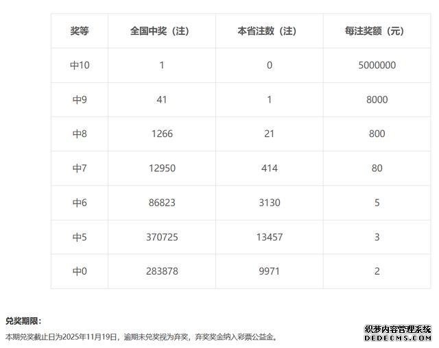 大皖新闻讯9月20日晚,安徽福彩网更新了彩票开奖公告。其中,快乐8开出一注中10大奖,奖金500万元。具体如下: ![]() ![]() ![]() ![]() 编辑 许大鹏 【来源:大皖新闻】 声明:转载此文是出于传递更多信息之目的。若有来源标注错误或侵犯了您的合法权益,请作者持权属证明与本网联系,我们将及时更正、删除,谢谢。 邮箱地址:newmedia2023@xxcb.cn 举报/反馈 |