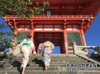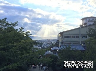清水寺: 四点到达清水寺,本以为傍晚时分游人能少点,然而这热门景点热度不退。上坡的路上有许多小店,美食啊,小玩意儿啊的,还有穿和服的姑娘们。若是樱花盛开时,想必会更美的。下山时已是六点多,行人终于稀疏了,俯瞰夕阳下的京都古城,阳光透过云朵射向人世繁华,路上的三轮车停歇了脚步。