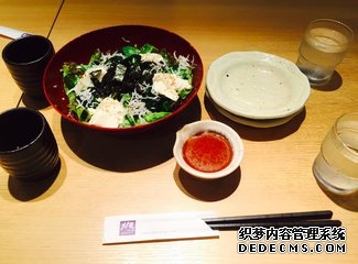 晚饭在大户屋吃的,这凉拌豆腐相当不错,蔬菜、小鱼、海带,淋上特制的酱。