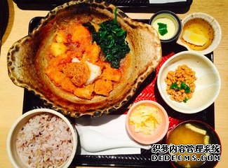 这一份是炸鸡肉伴着甜甜的酱,右边是纳豆、味增汤等。