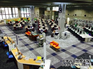 进门是多媒体电脑的使用区,左边上楼是国际图书区,右边上楼是日文书籍。