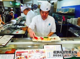 走到稍微边缘一点的地方找了一家寿司店吃了个中饭,这是给我做寿司的师傅。