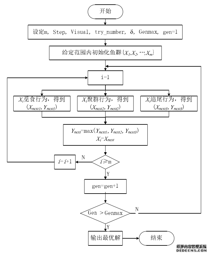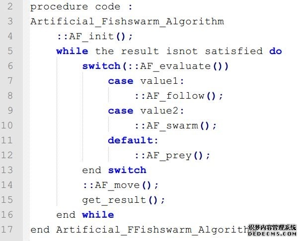 写在前面 说到这个人工鱼群算法,又想起了小编的卢浮宫……在今年年初的美赛中,小编用的就是这个算法,只不过……参加今年美赛的同学都懂的。 好了不扯了,本着学习的心态,还是想把这个算法写一写,给大家科普一下的吧。 01 人工鱼群算法 人工鱼群算法为山东大学副教授李晓磊2002年从鱼找寻食物的现象中表现的种种移动寻觅特点中得到启发而阐述的仿生学优化方案。 ![]() 1.1 定义 在一片水域中,鱼往往能自行或尾随其他鱼找到营养物质多的地方,因而鱼生存数目最多的地方一般就是本水域中营养物质最多的地方,人工鱼群算法就是根据这一特点,通过构造人工鱼来模仿鱼群的觅食、聚群及追尾行为,从而实现寻优。 人工鱼拥有以下几种典型行为: (1)觅食行为:一般情况下鱼在水中随机地自由游动,当发现食物时,则会向食物逐渐增多的方向快速游去。 (2)聚群行为: 鱼在游动过程中为了保证自身的生存和躲避危害会自然地聚集成群,鱼聚群时所遵守的规则有三条: 分隔规则:尽量避免与临近伙伴过于拥挤; 对准规则:尽量与临近伙伴的平均方向一致; 内聚规则:尽量朝临近伙伴的中心移动。 (3)追尾行为:当鱼群中的一条或几条鱼发现食物时,其临近的伙伴会尾随其快速到达食物点。 (4)随机行为:单独的鱼在水中通常都是随机游动的,这是为了更大范围地寻找食物点或身边的伙伴。 1.2 算法具体过程 人工鱼群算法实现的步骤: 1. 初始化设置,包括种群规模N、每条人工鱼的初始位置、人工鱼的视野Visual、步长step、拥挤度因子δ、重复次数Trynumber; 2. 计算初始鱼群各个体的适应值,取最优人工鱼状态及其值赋予给公告牌; 3. 对每个个体进行评价,对其要执行的行为进行选择,包括觅食Pray、聚群Swarm、追尾Follow和评价行为bulletin; 4. 执行人工鱼的行为,更新自己,生成新鱼群; 5. 评价所有个体。若某个体优于公告牌,则将公告牌更新为该个体; 6. 当公告牌上最优解达到满意误差界内或者达到迭代次数上限时算法结束,否则转步骤3。 1.3 算法流程图 ![]() 1.4 算法伪代码 结合上面的流程图,伪代码很容量理解了。 ![]() 02 参数解析 人工鱼群算法有5个基本参数:群规模N、人工鱼的视野Visual、步长Step、拥挤度因子δ、重复次数Trynumber。 2.1 视野Visual 动物的观察力是及其深奥的,它可以很快的洞察到周边的物体,鱼类的视野中分为连续型视野和离散型视野两类。应用如下方法实现虚拟人工鱼的视觉: 图2.1(a)表示具有连续型视野的一条假设的人工鱼个体,它能看到的区域 Visual 为以现在位置 Xi为圆心一定距离为半径的圆形区域,地点 Xj为它在一个时候巡视到的视点种另一地方,如果这个地点的食物量比之前地方的多,就决定去这个地方前进步长的随机数达到地点 Xnext; 人工鱼的离散型视野为与节点位置 Xi 相邻且相通的所有节点,如图 2.1(b)所示,根据判断边的代价来选择下一步位置 Xnext。 ![]() 由于视野对算法中个行为都有较大影响,因此,它的变化对收敛性能影响也比较复杂。 当视野范围较小时,人工鱼的觅食行为和随机行为比较突出;视野范围较大时,人工鱼的追尾行为和聚群行为将变得比较突出,相应的算法的复杂度也会有所上升。 总的来说:视野越大,越容易使人工鱼发现全局最优解并收敛。 2.2 步长Step 对于固定步长,随着步长的增加,收敛的速度得到了一定的加速,但在超过一定的范围后,有使得收敛速度减缓,步长过大时会出现震荡现象而大大影响收敛速度。 采用随机步长的方式在一定程度上防止了震荡现象的发生,并使得该参数的敏感度大大降低了,但最快的收敛速度还是最优固定步长的收敛速。 所以,对于特定的优化问题,我们可以考虑采用合适的固定步长或者变尺度方法来提高收敛速度。 2.3 群规模N 人工鱼的数目越多,跳出局部最优解的能力越强,同时,收敛的速度也越快。 当然,付出的代价就是算法每次迭代的计算量也越大,因此,在使用过程中,满足稳定收敛的前提下,应当尽可能的减少个体数目。 2.4 尝试次数Trynumber 尝试次数越多,人工鱼的觅食行为能力越强,收敛的效率也越高。 在局部极值突出的情况下,应该适当的减少以增加人工鱼随机游动的概率,克服局部最优解。 2.5 拥挤度因子δ 在求极大值问题中,δ=1/(αnmax),α∈(0,1]δ=1/(αnmax),α∈(0,1];在求极小值问题中,δ=αnmax,α∈(0,1]δ=αnmax,α∈(0,1]。其中α为极值接近水平, nmax为期望在该邻域内聚集的最大人工鱼数目。 拥挤度因子与nf相结合,通过人工鱼是否执行追尾和聚群行为对优化结果产生影响。以极大值为例(极小值的情况正好与极大值相反),δ越大,表明允许的拥挤程度越小,人工鱼摆脱局部最优解的能力越强;但是收敛速度会有所减缓,这主要因为人工鱼在逼近最优解的同时,会因避免过分拥挤而随机走开或者受其他人工鱼的排斥作用,不能精确逼近极值点。 可见,虽然δ的引入避免了人工鱼过度拥挤而陷入局部最优解,但是另一方面,该参数会使得位于极值点附件的人工鱼之间存在相互排斥的影响,而难以想极值点精确逼近。 所以,对于某些局部极值不是很严重的具体问题,可以忽略拥挤的因素,从而在简化算法的同时也加快算法的收敛速度和提高结果的精确程度。 2.6 小结 1.群规模:N越大收敛越快,越容易寻得全局最优解,但是计算量越大; 2.感知范围:视野越大,越易发现全局最优解; 3.步长:决定收敛速度; 4.拥