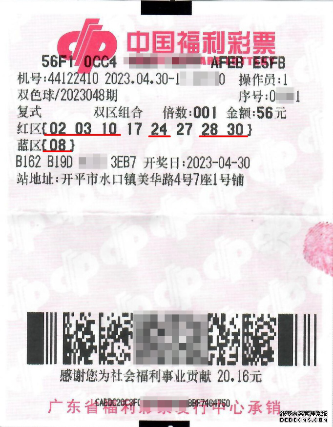 △“双色球”第2023048期江门市一等奖中奖彩票 恭喜恭喜~