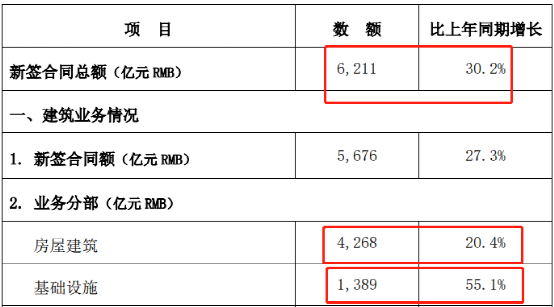 3月12日晚,中国移动、中国电信等“数字基建”巨头之外,中国建筑、中国电建等多家传统基建巨头也公布了2023年前两月经营情况,整体来看大超预期。 2023年1-2月,中国建筑新签合同总额6211亿元,同比增长30.2%,其中建筑业务新签合同5676亿元,增长27.3%,地产业务合约销售额535亿元,同比增长71.1%。中国电建1-2月新签合同金额1736.02亿元,同比增长43.26%,其中能源电力业务“狂飙”,新签合同金额近千亿,同比增长超300%。 分析人士指,今年基建依然是稳增长重要抓手,根据政府工作报告,2023年拟安排地方政府专项债券3.8万亿元(2022年为3.65万亿元),基建工程落地项目数量有望进一步提升。而在中国特色估值体系构建的大背景下,估值水平处在历史低位的央国企建筑股,有望迎来价值重估重大机会。 中国建筑新签合同增长30.2% 作为营收近2万亿、财富世界500强排名前十的巨无霸,用“大象起舞”都不足以形容中国建筑今年前两月的逆天表现。 根据公告,公司2023年1-2月新签合同总额6211亿元,比上年同期增长达到30.2%。