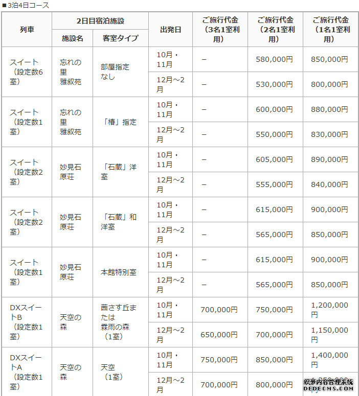 说起日本的交通,大概立刻都会想到以电光火石般的高速且准时正点而闻名的新干线列车。可即便是如此一个庞大的火车王国,日本的奢华列车旅行长久以来却是一纸空白 ——直到有了九州七星列车。 ![]() 这辆取名为七星(Seven Stars)的豪华列车,因为沿途会经过九州的七个县市(福冈、大分、熊本、佐贺、长崎、宫崎和鹿儿岛)以及玩遍七大观光主题(包括大自然、美食、历史文化、power spot、温泉、风土人情和铁路文化)而有此命名,就连列车也是采用七节车箱设计。 ![]() 日本九州铁路公司总共花了将近30亿日币打造了这辆足以媲美东方快车的极致奢华观光卧铺列车,光是外观造型就非常的吸引人,复古的朋克蒸气车头,刷有日本传统漆器雕红色的车厢,就好像回到了复古年代。 车厢内则是采用最为传统的和风风格,纯木的内部装饰都是采用日本最好的红木,枫木及核桃木。 车厢各处的细节也都是满满的日本特色和各种用心之作,单是窗花便有三层,竹帘、和纸、再加一块木板窗遮光。 ![]() 全车只有14间客房,最多容纳30人。每间房间设计都不一样,也就是说每位乘客都有一生豪一次或豪十四次的理由。 ![]() 客房浴室内散发日本檀木香,洗手盆打上射灯,把国宝级陶艺家十四代酒井田柿右卫门制作的田烧瓷器照得霍霍生辉。要知道,平时你去日本看大师的作品只能在美术展览馆,在这里可以用艺术品来洗脸刷牙,这是什么样的待遇! 日本人民对吃的痴迷绝不低于中国人,九州厨房也被搬上了列车。在这里,入口的全是沿线各站的时令食材,福冈的芝士豆腐、鹿儿岛的柠檬汁番薯、大分的冬菇、熊本的味增烤鸡、长崎的乌鱼子、下关的河豚刺身……简直无法继续写下去了。 ![]() 列车尾端观景车厢一端是巨大的落地窗,另一端则是酒吧以及一架一直有琴师演奏的钢琴。就算在走道上来回逛上几回都不闲腻,要是累了,可以坐下来喝着米其林大厨亲手炮制的下午茶,再来份现做的Stollen蛋糕,配合着小提琴和钢琴优雅的演奏,惬意至极。 ![]() 列车共有两条旅行路线,一条是两天一晚的福冈周边游,另一条是四天三晚的九州全景游。 两趟行程的起点和终点都是福冈博多站,在时速五十公里的列车上,不仅可以欣赏到雄壮的火山,延绵数百里的绿色竹林,金黄色的稻田和乡村,渔船点点的峡湾,还可以体验九州的特色温泉、九州乡野间最正统的日本传统文化以及各式美食。 ![]() ![]() 列车所掠过的地方,轨道旁的过客均欢天喜地拍照留念,而每次进站,路人总投以羡慕的眼光,使劲挥手,据土豪朋友说,当时那场面,只能脱口而出:众卿平身! ![]() 不过这样一趟的豪华列车之旅,票价不便宜,光是售价就要15~50万日币不等。不过对于九州七星来说,现阶段所面临的最大问题,却是数量日益增长的各国土豪跟极其有限的仓位之间的矛盾。 ![]() ![]()