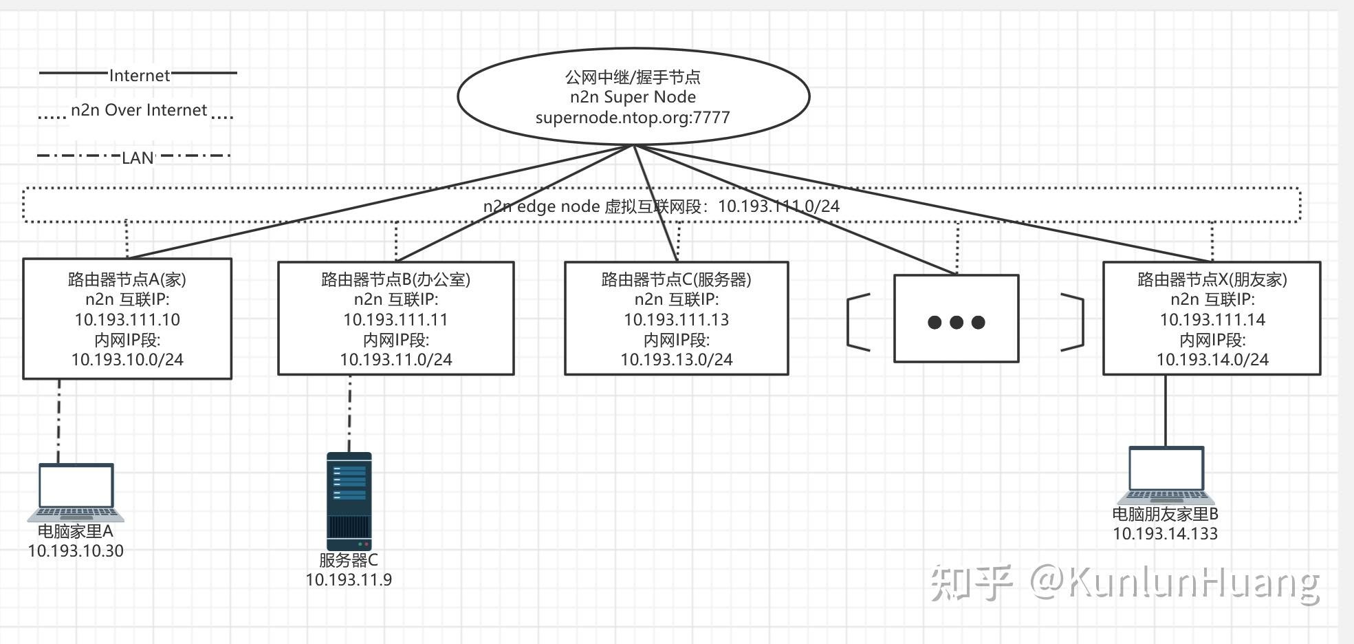本文主要介绍通过n2n结合动态路由RIP的异地组网方案,经过近一年的使用,比较稳定,所以分享一下。