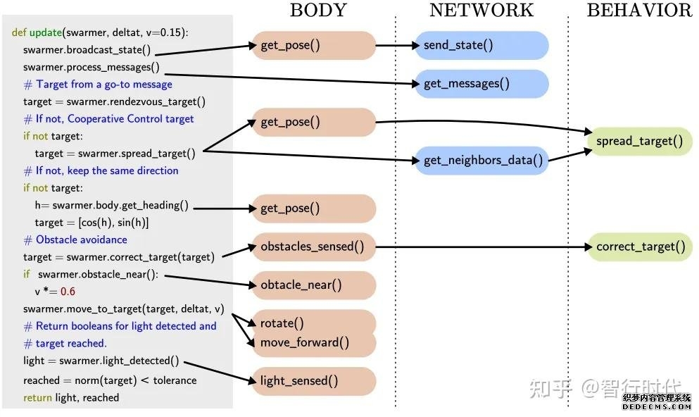 摘要:近年来,群体机器人技术得到了迅速发展,这主要得益于为实现特定集体行动而开发的专用群体机器人系统。一般来说,这些专用平台在设计时就将群体特性置于核心位置。群体运作所需的关键硬件和软件元素往往深度嵌入并整合到特定系统中。然而,鉴于市面上低成本移动机器人的数量显著增加,从业者和爱好者可能会考虑通过对这类移动平台进行最小程度的改造,配备群体赋能技术,来组建成熟的机器人群体。在此,我们报告了这种技术的一种可能体现形式——硬件和软件的集成组合,旨在使一系列通用机器人系统能够组建和研究群体行为。这是通过将模块化且可移植的软件工具箱与由一系列低成本、现成组件组成的硬件套件相结合来实现的。所开发的技术可以移植到相对广泛的机器人平台,如陆地和水面交通工具,只需进行最小的改动,且具有高度的可扩展性。这种群体赋能技术已成功应用于两个不同的分布式群体机器人系统,一个是移动海洋浮标群体,另一个是商用地面机器人团队。我们在不受控制的环境中,在没有任何支持基础设施的情况下,测试了这两种分布式机器人系统在执行集体探索和搜索场景以及其他经典协作行为方面的有效性。文中报告了这两个平台在不同群体行为上的实验结果。相关软件库的设计允许无缝切换到其他协作行为,例如领导者-追随者航向一致性和避碰,还提供了在将新设计的集体行为应用到平台之前进行模拟的可能性。这一特性极大地促进了基于行为的设计,即新群体行为的设计,并且可以在实际测试之前对其进行模拟。 01 简介 群体机器人系统由具有局部感知和通信能力的自主机器人组成,缺乏集中控制或全局信息访问能力,处于可能未知的环境中执行集体行动。根据这一定义,人们可以很容易地将群体机器人系统与其他群体机器人方法区分开来。 群体机器人系统在计算、通信和/或操作层面缺乏某种形式的去中心化并不罕见。群体机器人系统的灵感通常来自自然系统,在这些系统中,大量简单的个体通过彼此之间以及与环境之间的反复局部交互,表现出复杂的集体行为,例如鱼群、鸟群。群体机器人设计范式使群体机器人系统能够克服上述限制(局部感知、缺乏集中控制等),并以协调的方式自主运行。 人工群体的一个主要挑战是设计这样的系统:在保持去中心化控制的同时,个体能够(i)通过感知获取局部信息,(ii)与至少一部分个体进行通信,(iii)基于动态收集的感知数据做出决策。虽然去中心化使个体无法获得大型中央计算和/或通信枢纽带来的好处,但它为系统提供了鲁棒性。因此,该系统能够在广泛的群体规模(可扩展性)下执行全局集体行动,尽管可能突然失去多个个体(鲁棒性),并且在未知和动态环境下(灵活性)也能正常工作。 已经有许多值得注意的设计机器人群体的努力。kilobit、e-puck、Swarm-bots、marXbot、Alice、iAnt、Scarab、I-Swarm、r-one和Pi Swarm只是已开发的不同群体/分布式群体机器人平台的几个例子。每个平台都探索了群体的一些潜在方面和可行性,但并非所有平台都满足机器人群体系统的所有要求(根据上述定义),或者能够在没有任何支持基础设施的真实和不受控制的环境中运行。每个平台上实现的技术进步使其难以移植到其他平台,因为每个机器人都有其特殊性。事实上,这些平台的设计核心考虑了群体特性。因此,实现群体行为所需的核心组件完全集成在机器人内部。此外,由于硬件和软件的原始协同设计过程,软件层通常高度依赖于硬件规格。尽管这种缺乏模块化的深度技术集成提供了易于形成群体的平台,但也严重阻碍了其向其他移动平台的移植。 拥有现有自主机器人平台(包括商用平台)多个单元并希望研究群体行为的从业者,目前别无选择,只能设计自己的定制框架。一些研究小组使用的一种常见替代方案是,简单地设计可以通过现有的商用群体机器人平台(例如kilobot、e-puck等)实现的群体实验。尽管这种替代方案的优势在于可以利用经过充分测试的平台,从而节省大量时间,但它仍然限制了设计极具原创性实验的能力。我们提出的技术解决方案旨在通过提供一个与平台无关的框架(硬件套件与软件层的集成组合)来填补这一空白,该框架易于移植到大量硬件平台,便于各种群体算法的实现,同时减轻与平台相关的接口负担。 在此,我们报告了一种统一的、与平台无关的硬件/软件工具,它能够:(i)将一组基本移动机器人组装和转变为成熟的群体;(ii)使用易于编程的软件库实现多功能的群体行为。硬件套件和软件层的模块化特性允许该技术独立于移动平台的规格进行可能的演进、升级和扩展。我们展示了一些初步结果,验证了该技术在两个截然不同的群体系统上的有效性。这种群体赋能技术是硬件/软件的结合,允许广泛的群体机器人平台执行多功能且响应迅速的群体行为。这是通过为每个个体提供一个额外的接口硬件来实现的,该硬件由低成本的现成组件构建,并与专门开发的通用软件库集成。我们认为,这种将群体考虑与机器人考虑分离的技术可能会引起主要对人工群体研究感兴趣的研究人员和教育工作者的兴趣。 该软件采用Python编写,但也在C++中进行了测试,其设计具有模块化特点,以使该技术能够尽可能无缝地在不同平台之间移植,即只需进行最少的硬件/软件更改。为了评估所提