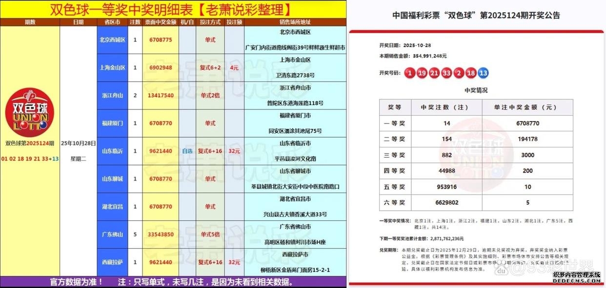 ![]() 今天是10月30日星期四,转眼又到了双色球开奖的日子,对于众多福彩爱好者来说,每个开奖日都是一次追逐梦想的机会。即使实现梦想的概率只有1700万分之一,可依旧阻挡不了大家追逐梦想的脚步,毕竟“梦想还是要有的,万一实现了呢”! 在上期(第25124期)开奖中就有9位彩民成功实现了大奖梦,而来自广东佛山的彩民更是一人独中5注一等奖斩获3354万元奖金,成为众人羡慕的对象。 不过最让人津津乐道的还是来自山东临沂与西藏拉萨的两位彩民,双双凭借一张6+16、32元投入的全蓝复式票中得1注一等奖以及15注二等奖,各自中得962万元奖金,足以证明全蓝复式票对奖金的加持力度之大。 ![]() 回到正题,今天是双色球第25125期开奖日,作为本月的收官之战自然是让彩民们更加的期待,全国各地的彩民也纷纷晒出自己的实票,期待着好运的降临。 本场晒票打头阵的仍然是来自江苏无锡彩民的990元倍投票,这位痴心不改的追梦人从今年年初开始到现在一直渴望实现5亿元巨奖梦,只可惜“幸运女神”并没有被他执着的精神所感动,除了偶尔少数几次中过六等奖外基本上都为福彩公益事业做了贡献。 不过即使是屡战屡败也没有影响到其追逐梦想的脚步,在昨晚22点09分41秒再次花费990元购买了一张99倍投的单式票,并且重新进行了选号投注,那么在这场“收官之战”中能否创造5亿元巨奖奇迹呢?让我们拭目以待! ![]() 复式票方面,来自湖南合买团的16016元票也同样“不中大奖不罢休”,第N次通过合买的方式向一等奖发起冲击。这次的选号重点放在了中后部大号区域,尤其是对“2字头”号码寄予厚望,当然近期热开的连号都是彩民们首选的参考方向。 至于蓝号,本期依旧是单挑,只不过从上期的独冷号01换成了热号02,看来这个合买团对01的爆冷信心不足。就是不知道这次的临时换号究竟是一举拿下大奖还是再次献爱心呢?值得期待! 随后还有3张千元票以及3张百元票登场,每张票都寄托了彩民们对中奖的渴望,感兴趣的朋友不妨细细品味一番。 ![]() ![]() ![]() ![]() ![]() ![]() ![]() 好,以上就是本期双色球全部的晒票,感谢您的阅读,我们下期再会!最后依旧是温馨提示:购彩有风险,请量力而行! #秋季图文激励计划# 举报/反馈 |