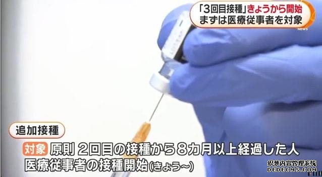 日本从12月1日开始,进行新型冠状病毒疫苗的第三针接种。对象为距第二针疫苗接种已经过了8个月且18岁以上的医疗从业人员。对高龄者的接种将从明年年初开始。医疗机关和高龄者设施若是出现了集体感染的情况,再接种的间隔可缩短为6个月。