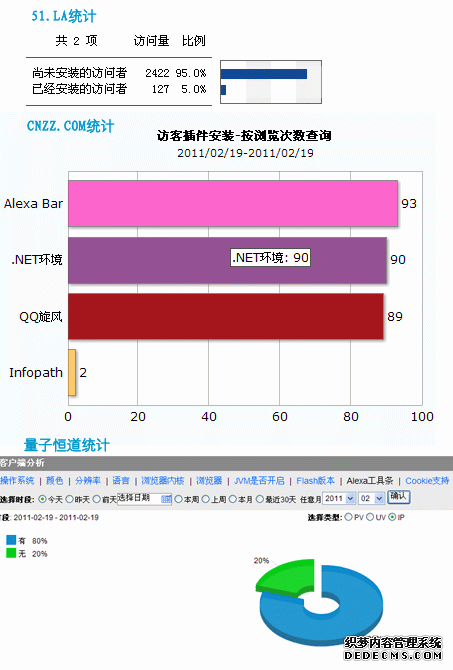 CNZZ数据专家 CNZZ LOGO(1)站长统计 国内站长使用最多的网站流量系统,为个人站长提供安全、可靠、公正的第三方网站访问免费统计。是站长们每日必看的流量统计分析工具。通过CNZZ站长统计,站长可以随时知道自己网站的被访问情况,每天多少人看了哪些网页,新访客的来源是哪里,用了哪些浏览器登录和在哪些时间段登录,网站的用户分布在什么地区等非常有价值的信息数据。站长们根据CNZZ站长统计,可以一目了然的及时知道自己的网站的访问情况,及时调整自己的页面内容,推广方式,以及对自己网站的调整做出客观公正的评测。同时CNZZ站长统计已经被业内公认为是一个可信赖的第三方评判标准,发生网站访问流量方面的疑问时,大家都愿意以CNZZ站长统计来作为第三方的公正评判依据。 (2)全景统计 为商业站点,大型公司网站量身定做的流量统计分析系统。CNZZ全景统计系统为高端客户提供高效,稳定,安全的商业统计服务。通过CNZZ全景统计服务,网站的管理员可以及时掌握站点流量的变化情况,遇到突发流量变化可以第一时间接到各种渠道的报警通知。CNZZ全景统计还提供多角度的数据统计,对比,以及生成报表,便于网站管理员评估,以及深入二次挖掘数据价值。使用CNZZ全景统计可以多角度掌握站点流量变化情况,从多角度验证公司业务发展情况,为公司发展提供辅助决策信息,对当前网站的访问情况作出准确,客观的评估。 (3)广告统计 CNZZ广告分析为广大互联网广告主提供广告投入与效益回报的监控分析服务。系统通过广告维度的专业划分、流量数据的精确统计、访客行为的全面分析、利益转换的有效衡量,从多角度全面的帮助广告主及时把握广告效果,针对现有投放方案做出理性分析与调整,完美实现推广最优化、效益最大化。 (4)数据中心 依托CNZZ强大的统计服务、领先的数据采集技术,深度挖掘互联网用户行为数据,秉承科学、严谨、客观的态度,专注于各行业数据深度研究,为各行业提供优质的数据产品和调研服务,全方位、系统化的解决客户在多种状况下遇到的问题。CNZZ数据调研中心可以真实的反应中国网民的网络行为应用,支持网络媒体、广告公司、投资集团的战略制定、市场合作及行业竞争分析。针对不同行业整体运营情况进行分析,帮助客户准确了解市场形势及自身行业竞争力,并根据客户的具体需求,提供最具价值的研究数据报告,个性化的解决方案,帮助改善客户的商业服务。 百度统计是百度推出的一款免费的专业网站流量分析工具,能够告诉用户访客是如何找到并浏览用户的网站,在网站上做了些什么,有了这些信息,可以帮助用户改善访客在用户的网站上的使用体验,不断提升网站的投资回报率。 百度统计提供了几十种图形化报告,全程跟踪访客的行为路径。同时,百度统计集成百度推广数据,帮助用户及时了解百度推广效果并优化推广方案。 基于百度强大的技术实力,百度统计提供了丰富的数据指标,系统稳定,功能强大但操作简易。登陆系统后按照系统说明完成代码添加,百度统计便可马上收集数据,为用户提高投资回报率提供决策依据。是提供给广大网站管理员免费使用的网站流量统计系统,帮助用户跟踪网站的真实流量,并优化网站的运营决策。 网站统计使用说明 百度统计仅开放给百度推广的客户和百度联盟成员,用户可以在百度统计首页登陆查看,也可在登陆百度推广或百度联盟后在推广或联盟系统中直接点击进入,根据页面提示安装代码后即可使用。 特色功能 代码正确添加后,进入百度统计,用户即可看到含有丰富数据的概况页,为用户提供用户网站最重要的流量报告,方便用户从全局了解网站流量情况。然后进入各个报告,可以从以下角度细致了解网站的流量情况。