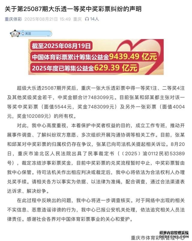 封面新闻记者 马嘉豪 700多万元彩票大奖被冻结,体彩店店主和彩民抢起了彩票? 近日,重庆市江北区一家体彩投注站出现了因一张巨额大奖彩票的归属问题,陷入激烈纠纷的事件,涉及金额高达700多万元。 争论纠纷发生在彩票店店主和彩民之间。 8月21日下午,重庆体彩中心发布声明,奖金已被重庆市渝北区人民法院依法冻结,彩票由重庆体彩中心暂时保管。彩民张某和彩票店店主邱某对中奖彩票的归属权存在争议,张某已向司法机关提起诉讼。 大奖降临 纠纷骤起:彩票究竟属于谁? 8月2日,位于江北区的一家编号为500200XXXX的中国体育彩票投注站,售出的彩票“命中”大奖,最高中奖金额达到700余万元。然而开奖后,喜悦还未散去,激烈的争夺就开始了。 ![]() 中奖通报。 体彩店店主邱某在社交媒体上发布声明,称其上级直属领导(重庆市体彩中心江北分中心经理)唐某向她介绍了一个人,即彩民张某,微信昵称“浮兮”,到她店里买彩票。唐某还要求邱某向张某进行返点。 “我们是通过微信群购买彩票,由‘浮兮’提供彩票号码,我按照提供的号码出票,出票后将彩票进行备注,然后拍照发至群内。”邱某称。 邱某在其投注站点。图片来源于邱某社交媒体平台7月23日至8月2日,“浮兮”共在微信群里提供四次号码,其中一次邱某因“没有垫付资金”,也就没有出票。 店主邱某说,彩票款项由她先垫付,开奖之后“浮兮”再将彩票款项转给她。 “以第一次购票为例,7月23日出票总金额为18998元,开奖后兑奖金额为5090元,减去返点费用,‘浮兮’还需支付9538.46元,这笔钱在第二天中午收到。” “7月31日,‘浮兮’再次向我发送多组号码,出票金额达到9.8万元。截止彩票停售,‘浮兮’未到我店支付票款、领取彩票。8月2日彩票开奖后,有自称购票者的人来店里索要彩票。” ![]() 8月2日大乐透第87期一等奖单注奖金达到698万元,加上追加奖金,中奖金额超过700万元。 邱某认为,“浮兮”索要的彩票款项由她垫付,且“浮兮”并未及时领取彩票和支付购票款。彩票就应归她实际所有。因此,邱某觉得她对彩票“具有不可争辩的所有权和处置权”。 彩票店店主否认中奖彩票为“合买” 封面新闻记者走访了重庆多家体彩店了解行业情况。一位体彩店店主透露,这次纠纷很有可能是源于“彩票合买”,这种模式在彩票业内非常普遍。 “‘合买’就是为了冲销量,会把一张几千上万的大额复式票分成很多‘股’,由店主在各自的彩民中推销,然后彩民们一起买。有时候店主也会参与‘合买’,这样中奖概率会提高,投入也会很大。” 这位店主解释说,“为了省去繁琐的收款步骤,惯例都是先出票,开奖后再结算。中奖之后就按出资比例分奖金。” 另一位店主也证实了这一说法,强调“合买”在彩票圈内都很常见,属于一种“擦边球”行为,虽不提倡但广泛存在。 而在邱某看来,她与“浮兮”之间并不属于“合买”。“本人与‘浮兮’之间不存在长期合作关系,也没有赊销约定。” 根据《中国体育彩票实体渠道管理办法》第四十七条规定,代销者组织购彩者合买的,体育彩票销售机构应给予暂停销售处理并责令其改正。此外,体育彩票销售人员合规管理要求“十禁止”,第六条也明确规定:禁止宣传、组织和诱导彩票合买。 官方回应:法院已冻结巨额奖金 ![]() 重庆体彩中心公告。 关于此事的定性,重庆市体彩中心回应封面新闻记者:“中奖彩票的归属权还存在争议,现在重庆市渝北区人民法院已经裁定冻结涉事彩票奖金,重庆市体育局正在进行调查核实。” 体彩中心工作人员还表示,相关部门对此事高度重视,正在开展调查工作,后续将以上级通知对外发布信息。 随后,记者又联系到江北区文旅委副主任胡佐忠,他表示,“一是积极进行协调,如果协调不下来可以通过司法途径进行解决。” 关于彩票是否属于“合买”,胡佐忠表示,“体彩有规定,就是只认票,不认人。至于在交易过程中是否存在反映的(合买)情况,或者有委托关系存在,都需要当事人进行举证,由法院进行判定。” 如何从法律角度来界定体彩店主邱某与彩民“浮兮”之间,是否为“合买”的“委托关系”? 重庆履成事务所律师尹明沁表示,“尽管店主依据《中华人民共和国民法典》中‘认票不认人’的原则主张彩票归其所有,但此案还需考虑双方的交易习惯和口头约定。” 尹明沁表示,双方在前几次购买彩票的操作模式中,如果有交易习惯和微信聊天记录、转账记录等证据,或可作为证据,表明双方存在一种委托关系。 北京泽亨律师事务所律师胡磊则表示,本案的核心争议是事实认定问题,关键在于确定双方之间成立的合同关系及其生效节点。 “需要查明店主与彩民之间是否明确约定合同的成立标准,是以彩票店出票完成作为标志,还是以彩民实际支付票款作为彩票所有权转移的前提,法院也会根据调查结果进行认定。” ![]() 海量资讯、精准解读,尽在新浪财经APP