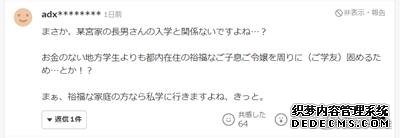 号外!号外!东京大学学费要涨价了!2024年9月10日,东京大学公布了学费改革和学生支援扩充计划,从2025年4月起,新入学的学士课程学生,学费将上涨10万7,160日元,达到每年64万2,960日元(约合人民币3.2万元),增幅为20%。修士课程将于2029年起涨价,博士课程保持不变。现行的53.58万日元/年学费是2005年制定下的,历经20年终于涨价了。 东京大学方面表示,自日本国立大学法人化以后,除了努力确保运营费拨款以外,还曾通过强化财务、多样化等多种措施,来推进学习环境的整备。但在高等教育的全球竞争日益激烈的情况下,改善学生的教育学习环境“刻不容缓”。本次东京大学学费的上涨,主要目的就在于此。 ![]() 东京大学具有重视“即使经济贫困,只要优秀就能在东京大学学习”的传统,所以在提高了东京大学学费的同时,也扩大了学费免除的范围。比如, 1. 全额免除学费的对象从现行的家庭收入400万日元以下调整为600万日元以下; 2. 对于家庭收入超过600万--900万日元以下的学生,将根据出生地等个别情况和具体情况进行部分学费免除。 3. 尽快加强经济问题咨询支援窗口的建设,并建立一个共同思考与学生有关的问题的机制。 ![]() 对此,名为“反对东京大学学费上涨紧急行动”的学生团体,于9月11日发表抗议声明,指出“学费应该低廉”、“学费涨价方案与逐步引入免费教育背道而驰”、“国立大学应该与政府合作,努力保障所有人接受高等教育的权利,但却试图自己打破这一规定。作为高等教育机构,违反作为教育机构依据的重要原则是极其不诚实的,也是作为学术机构不应有的态度。” ![]() 对于同时公布的学生支援扩充方案,学生团体也表示担忧。“这不能称为完美的解决方案”,“仅仅设立学费减免制度不足以保障教育机会均等”。对东京大学学费上涨带来的增收部分的用途、校内达成共识的过程也提出了疑问,要求大学执行部重新评估当初“得出该结论的程序”。在抗议声明中,包括此次学费上涨在内的、所有与“受教育权”相关的问题,都被认为是由公共支出(例如运营费拨款)被削减而引发的,呼吁“最终应以教育免费化为目标”。 ![]() 日本国立大学的学费是由日本文部科学省规定的,标准额为53万5800日元/年,各大学可以在这个基础上适当增加,但最高不得超过标准额的20%。目前学费已经涨价的国立大学是: 东京工业大学、 东京艺术大学、 千叶大学、 东京医科齿科大学、 一桥大学、 东京农工大学。 我们可以合理推测,日本国立大学涨价这个趋势是必然的。所以,对于东京大学学费此次的上涨,似乎也不必小题大做。而日本人,似乎关注的问题点和咱们还有些不一样。我节选了一些日本网友对于此事的评论,让我们来看看日本人自己是怎么看待这件事吧。 ![]() 日本网友评论东京大学学费上涨1: 翻译:国家一边说要培养人才,一边提高国立公立大学的学费,简直是南辕北辙。这说明了自民党是多么不可信。 另一方面,在安倍的朋友开的学校上投入了巨额的政府补助金。应该先去挖一挖私立高校经营的“黑暗”。钱应该从这里省吧。 ![]() 日本网友评论东京大学学费上涨2: 翻译:我想这是没有办法的,因为物价上涨了…… 对于一部分贫困阶层,应该另外制定救济政策。 因为大部分都是从小就交过高额补习班费用的家庭,所以应该会觉得(东大学费)很便宜。如果你不能接受物价上涨,那你的经济观念就已经破产了,所以我不希望这样的人进入社会成为领导者…… ![]() 日本网友评论东京大学学费上涨3: 翻译:我认为至少东京大学的学费应该平等。 本来所有国家的学费都应该是免费的 为什么要以家庭年收入划线 日本的教育制度太不平等了 父母拼命工作努力纳税的结果,明明都是孩子却要面临不公平的制度。 超过一定收入的话,除了一部分自治体以外,不属于高中免费化对象! 1000万左右不符合奖学金对象! 低收入家庭→几乎不用交税→孩子可以免费上幼儿园(现在所有3岁以上的家庭都可以免费?好像是)高中免费→大学免费→上班族无负债开局。 中等收入家庭→好好缴纳税金→不属于高中免费对象(部分负担/全额负担)→大学(奖学金借款/根据收入的不同教育贷款)→上班族背负借款开局! 这会很奇怪!! 让孩子的教育费用平等。 ![]() 日本网友评论东京大学学费上涨4: 翻译:难道和某宫家长子的入学有关系……? 不想让没有钱的乡下学生,而是想让住在东京都内的富家千金和少爷做(悠仁的)同学……这样? 但是,如果是富裕家庭的话,会去私立学校的吧,一定。 ![]() 日本网友评论东京大学学费上涨5: 翻译:皇族的儿子(悠仁)想要进(东大)去,也许是受此影响,(东大的)驹场校区现在正在重建。 我想会修建的很漂亮吧…… 那确实是要花钱啊。 ![]() 日本网友评论东京大学学费上涨6: 翻译:偶尔像以前一样大闹一场怎么样?“第二次东大纷争”爆发也挺不错的呢。 东大纷争之前,日大斗争开始的理由之一也是破坏学费上涨计划。斗争被警察队镇压下去后,日大短时间内没有上涨学费哦。 有试一试的价值不? ![]() 以上是由柠檬留学为你带来的《东京大学涨学费是为了迎接皇子悠仁入学?快来看看日本人怎么说。》,我是小白江,日本留学圈默默耕耘只为能有个满意的offer。 举报/反馈 |