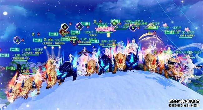Q6:势力发展壮大至今,期间有没有获得什么成就,发生过值得纪念的事情呢~ 太多了!我们竞技场前三常年雄踞排行榜,新大区一共两届季后赛,第一届是冠军,第二届咱们分开组两个队,冠亚军都是咱们的!我们的战队名字也贼特别哈哈~ 那天大家一起去无双城拍了纪念合照,这个坐骑是冠亚军的奖励坐骑~