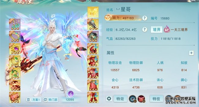 然后是十三幺目前的势力主丷星哥,玉玑子最帅弈剑(荒火)。同样是物理攻击破万的强者,搭配上4319点会心,令他每一击都能制造出爆炸伤害!星哥很看重兄弟情义,一直心系势力,会从各个方面给予势力支持,是个特别善良的一个人。星哥平时最喜欢干的三件事:pvp,开箱子,搞装备。