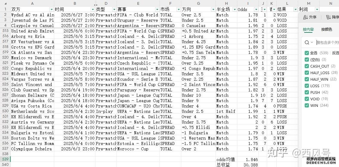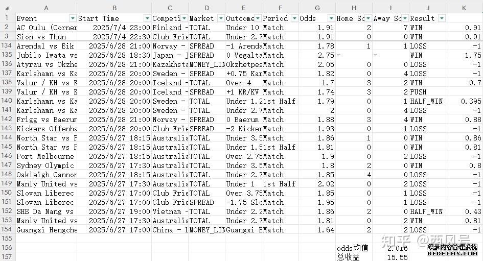 我职业竞彩4年了,也开了彩票店了,希望大家分享下经验,共同进步。 ![]() 这几个月公开后,各个渠道很多朋友问我怎么分析比赛,想学,想买料。 我先讲一个故事,以前一个买料的客户,当时我才刚刚有盈利能力(现在看很稚嫩),在澳客上会发一发短文评价英超,当时开始基于数据库算概率也摆脱不了玄学(欧赔、亚盘)去给个人看法,但是运气很好,17年英超200+场记录排除half和push胜率是62%,这个朋友主动想办法让我加他,说跟我2个月英超赚了50,并给我1w1月(最初定价来源,hh)。他是个理工研究生,自己却陷入玄学的桎梏无法自拔,其实是蛮有主见的人,很多时候就是参考我意见,我对他而言就是提供情绪价值,他看好的比赛,我看好,信心很足。当时运气很好,一直收米,每天超过4个小时只研究英超意甲西甲一周不到30场的比赛都觉得很累,然后认为该给自己放个假(那时候我长年在外出差),就告诉他我准备休息1个月,出去玩玩。中途他也问过几场,结果一个月回来后我问他咋样,告诉我输了120万。从正收益到负收益,短短一个月,输得越多打得越大,几个月短时间的高胜率带来了不切实际的自信,我都能想象他背后输红眼的样子,这个事情本身给我了很大震撼,连忙告知另外两个老板,交易中止,戒赌吧。说真的,那时候我才开始重视一件事,分析预测真的不重要,资金管理在任何形式的交易上占比超过50%。而所有的分析手段就算有正期望值,也不会太高,但是有几个人能把这玩意做成投资心态?你一个月收入3w,会去体彩店只打100的票吗? 下面的内容是毒药,除了个别我认为有用的东西,只提供个思路,希望能打开大家的桎梏,有问题,评论区,我会慢慢发文回答。 ![]() 这是我之前想做教学的大纲,结果发现这种也不太好,那我先当个引子给各位看看。 首先我直接给出答案,足球这条路有两个走法,第一条,(量化)自己算概率,第二条,跟随牛逼的公司去抢赔率 本质上就一点,你的赔率X概率>1,具有期望值。 今天就到这,关于抽水和收盘价我会再等时间更新。 半夜下大雨,继续做完引子 先说最核心的底层逻辑 一、注意抽水(手续费)是任何交易的最重要的部分 ![]() 以这场英超举例,最谨慎的伙伴希望在收盘前确定市场定义的最终概率时做选择,无论他是去哪边 最优的选择是富勒姆+0.5 1.98 或者 利物浦-0.5 1.98,此时抽水率为1% 意味1万场下来,你要输10000*0.01=100单位 如果你是在澳门门店玩,1.92 1.94的抽水率是3.6%,你的劣势被放大了360% 意味1万场下来,你要输10000*0.036=360单位 就专业人员而言,战胜2%以内的抽水是很正常的,只需要你去买到算好的概率,或者通过基本面分析,例如xG数据,射门,过人,助攻,甚至是门禁防守能力,跑动距离等等,非常多,也能战胜。这也是我评价英超为最公平的比赛的原因,你很容易拿到99.5%的返还率,战胜市场的难度适中(返还率低高限额也代表非常精准,所以能获取的优势也很小),可惜英超一年只有380场而不是3800场。 二、真实的无抽水价格 我之前做视频反复强调过顶峰(PB)的收盘价,因为你如果无法确认自己算的概率是否准确时,就应该使用牛逼机构的收盘价(终赔)作为标准,而欢迎winner的顶峰无论是从赔率变化速度还是营收策略,都是最值得相信的,亚洲我同时推荐金某某公司,抽水低,限额高、赔率变化速度快的公司可以默认为领头羊.至于收盘价CLV的有效性为何这么高,我建议自行查找论文,这里不过多解释。 如何计算无抽水价格呢? Stephen Clarke, Stephanie Kovalchik, and Martin Ingram: "Adjusting sportsbook’s Odds to Allow for Overround." 美国体育科学杂志的这份研究帮了大忙 实际上我很早关注的一个开拓思维的老哥就直接给出了无抽水计算器 不过都不重要 顶峰对利物浦这场的clv是4.27 3.55 1.95,简单的计算方法得出4.452 3.675 1.987 细心的你这时候肯定发现了,等效市场里顶峰给利物浦可是1.96 你只需要知道,赔率低的一方,一般来说抽水越低,而像这场比赛,你只要1.99的位置拿到利物浦,就很可能具有正期望。但是不足以战胜市场,那么安全边际是多少? 像英超这样的比赛,也许2.05的价格拿到利物浦才是合适的。 可是利物浦不是输了吗?对,结果不重要,选择更重要。可有意思的是这场比赛你永远不可能在利物浦身上拿到赛前价值,收盘价实际就是最高的,而且从头到尾没有机构、团队、公司认为利物浦的开价够高,除非你赛前概率算错了! 结论:A级比赛你需要比顶峰收盘价高10个点可能才有获利空间,除开五大,你可能需要至少20个点。 这也是我推荐的如何判断你做了对的选择,而不是简单的“蒙”个方向,这也是为什么英超推荐我甚至在上一轮还未结束的时候就会给出优质比赛的方向,例如 ![]() 大多数人能拿到的最高价实际上就是11号的时候 但实际推荐中,我讲这些别人是不懂的 而且从亚盘角度看结果似乎没有区别 希望面前的你能想明白 下面分别展示了测试不同环境的模拟情况,一个是上个月的,一个是近一周的。 ![]() ![]() 看似近期运气好,用1/3的数量完成了超过50%的业绩,实则主要原因还是因为整体的EV更高,单EV超过了之前EV的50%。 更重要的是很多鼓吹胜率的人,我就不评价了,这才是订单本身应该的样子 当然,走水赢半也算的话,商业吹一吹倒是没啥 至于所谓的亚盘胜率,我认为很牛逼的人工分析3000场下来都不太可能超过57%,当然,odds均值得有个1.9吧,抛开赔率说概率就是耍流氓 暂时讲到这吧 后续