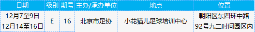 为贯彻落实《北京市足球改革发展总体方案》,进一步加强足球教练员培养力度,推动教练员等级培训体系实施,北京市足协拟于2024年12月举办教练员等级培训班,现将有关事宜通知如下:1.年满18周岁,具有良好的人格榜样与道德风尚; 2.热爱足球教练事业,以及较好的球队管理与协调能力;3.报名学员须确保身体健康,能够完成教练员等级培训课程的实践部分内容。请登录北京市足协教练员管理系统(http://www.bjfacoach.com)--在菜单栏点击“培训报名”选择对应培训班,申请报名即可。1.学员携带学习用品(笔记本、签字笔、哨子、秒表)及必要的运动装备(足球鞋、护腿板、白色护袜、运动眼镜等)。2.报到时,需向培训班管理员提交6个月以内的体检合格报告及在保期内的意外保险单,培训结束后返还。体检报告应由县级以上医院或体检中心出具,包含心、肺、血压、肝功能等检查结果。未提交相关材料人员,不予录取。3.所有参加培训学员需确保身体健康,能满足此次课程训练要求,因个人身体原因导致的任何后果由学员自行承担。4.培训班期间严禁请假,缺课2学时将视为自动退出。(联系人:于占洋 ;联系电话:010-63028334)